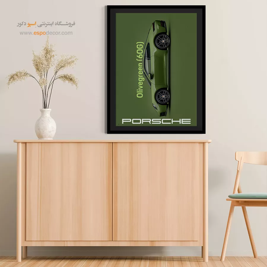 معمولاً شامل یک چاپ (روی کاغذ یا مقوا) است که داخل یک قاب چوبی، فلزی یا PVC قرار گرفته و برای محافظت از تصویر، با شیشه یا پلکسی پوشانده میشود، که این شیشه و قاب وزن و جلوهی رسمیتری به آن میبخشد.