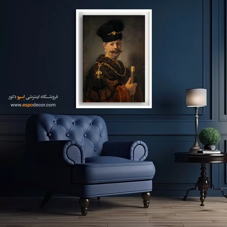 تابلو نقاشی نجیب زاده لهستانی رامبراند، یک پرتره دراماتیک و فاخر از دوران طلایی هلند است. این شاهکار هنری با تکنیک استادانه نور و سایه، حس ابهت و اشرافیت را به دکوراسیون شما میآورد. چاپ گالری این اثر با بالاترین کیفیت، انتخابی ایدهآل برای فضاهای لوکس و کلاسیک است.