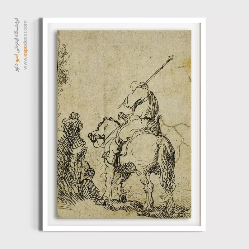 خرید تابلو نقاشی سرباز عمامه دار سوار بر اسب رامبراند \| ابهت نظامی و شکوه شرقی