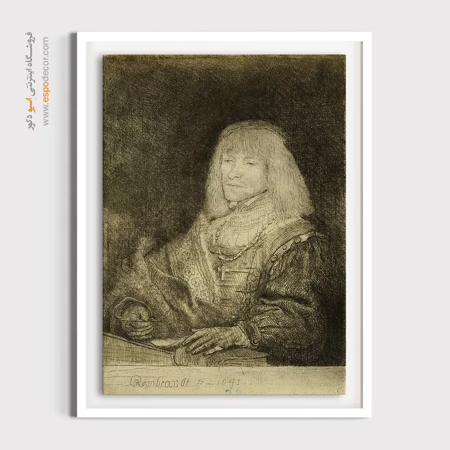 خرید تابلو نقاشی مردی پشت میز با صلیب و زنجیر رامبراند \| نماد وقار و معنویت