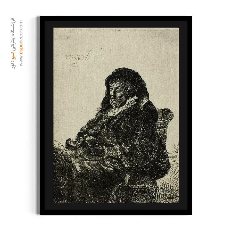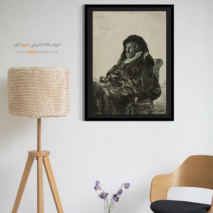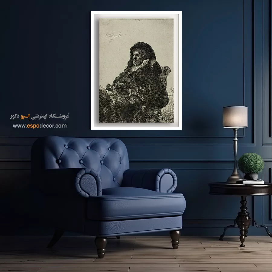 پرترهای صمیمی از مادر رامبراند در محیطی خانگی، که نمادی از عشق، سن و وقار است. رامبراند با نورپردازی متمرکز، بر چهره و دستهای متفکر تأکید دارد. چاپ بوم این اثر، انتخابی گرم و متفکرانه برای فضاهای خانوادگی است.
