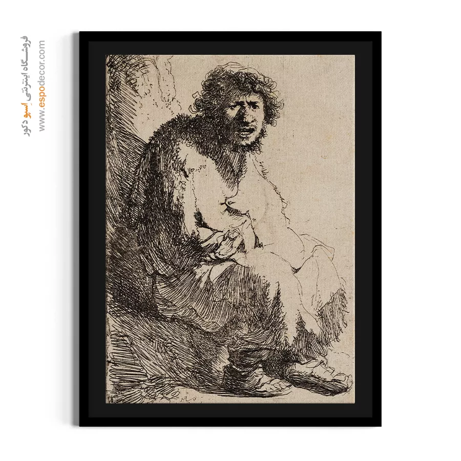 خرید تابلو نقاشی گدای نشسته رامبراند \| مطالعهای عمیق بر وضعیت انسانی
