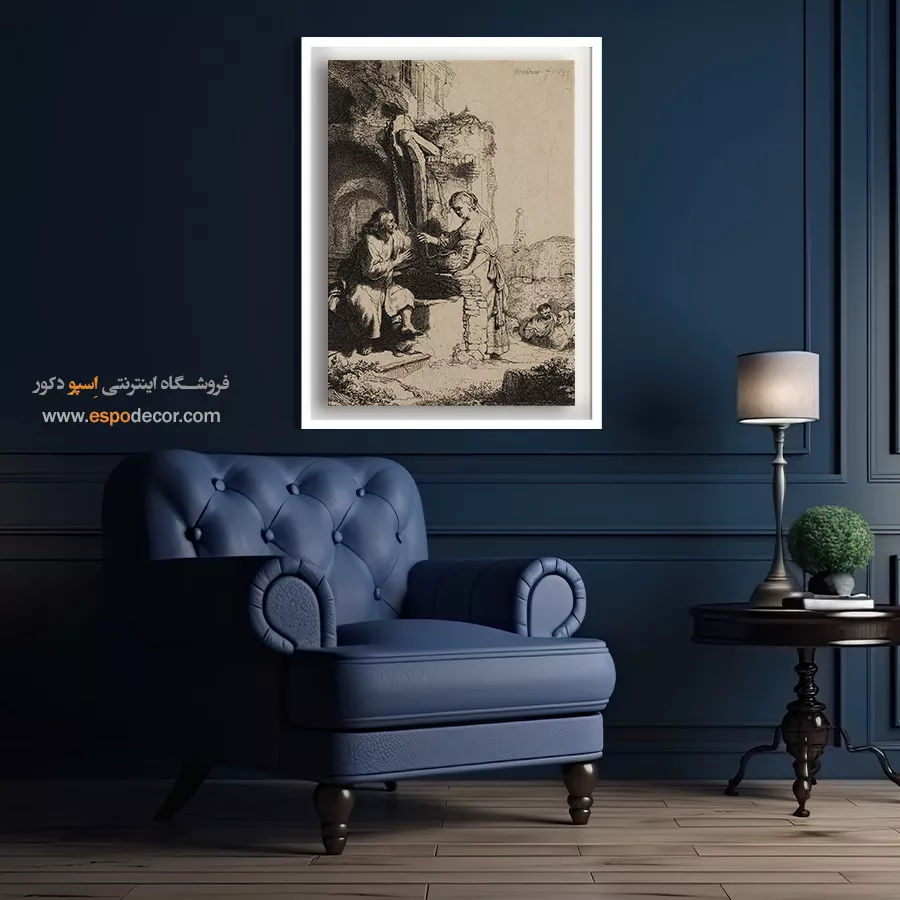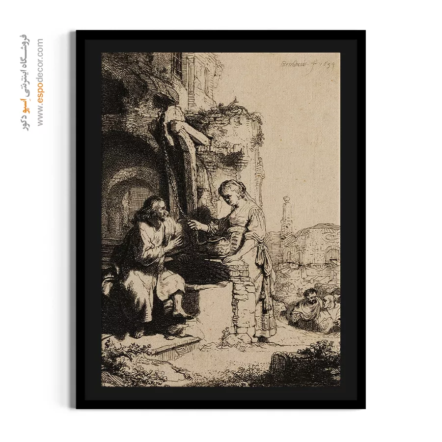 خرید تابلو نقاشی مسیح و زن سامری در میان ویرانه ها رامبراند \| گفتگو در جستجوی حقیقت