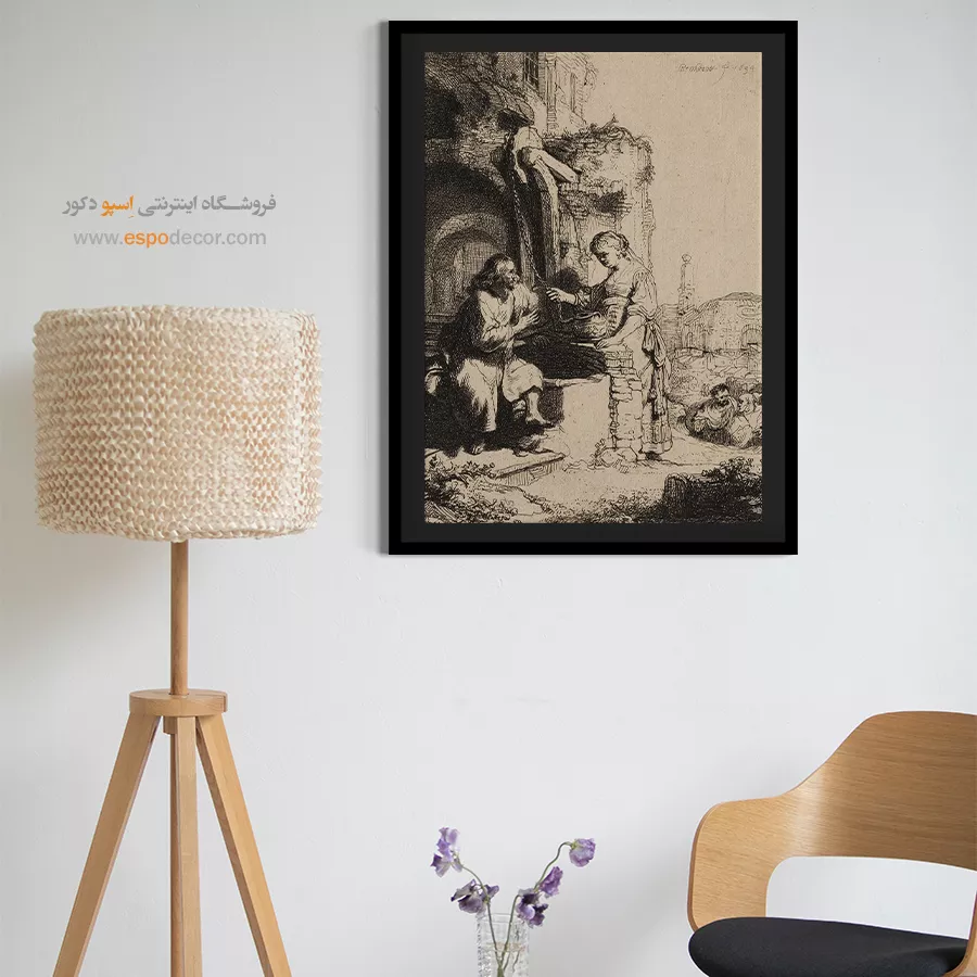 این تابلوی داستانی، گفتگوی نمادین مسیح و زن سامری را در کنار چاه و در میان ویرانهها نشان میدهد که نماد جستجوی حقیقت و امید است. نورپردازی متمرکز، بر تعامل دو شخصیت تأکید دارد. چاپ گالری این اثر، انتخابی متفکرانه و تاریخی است.