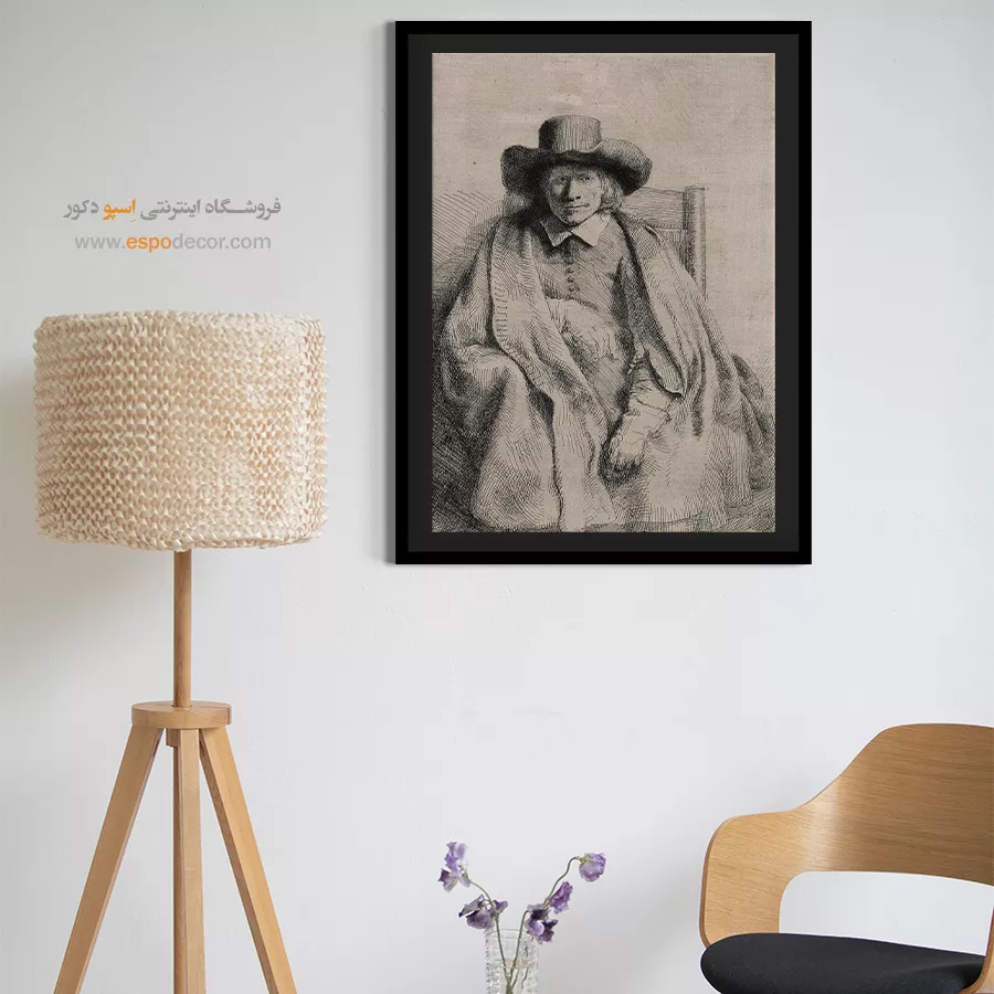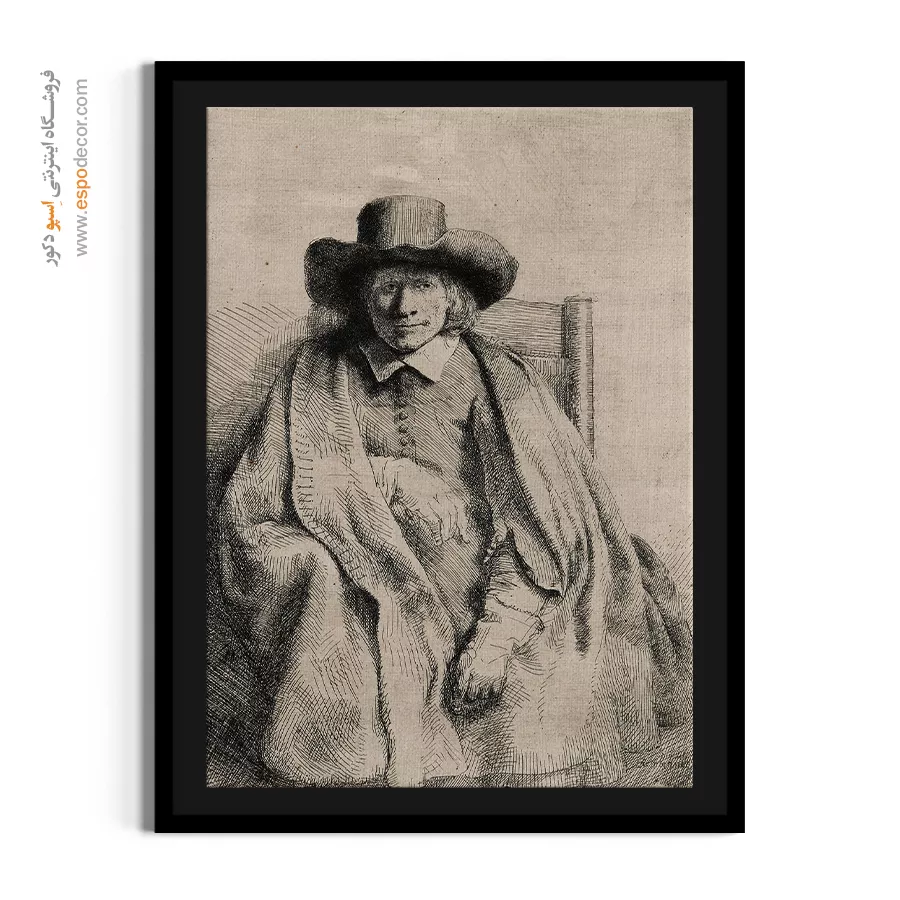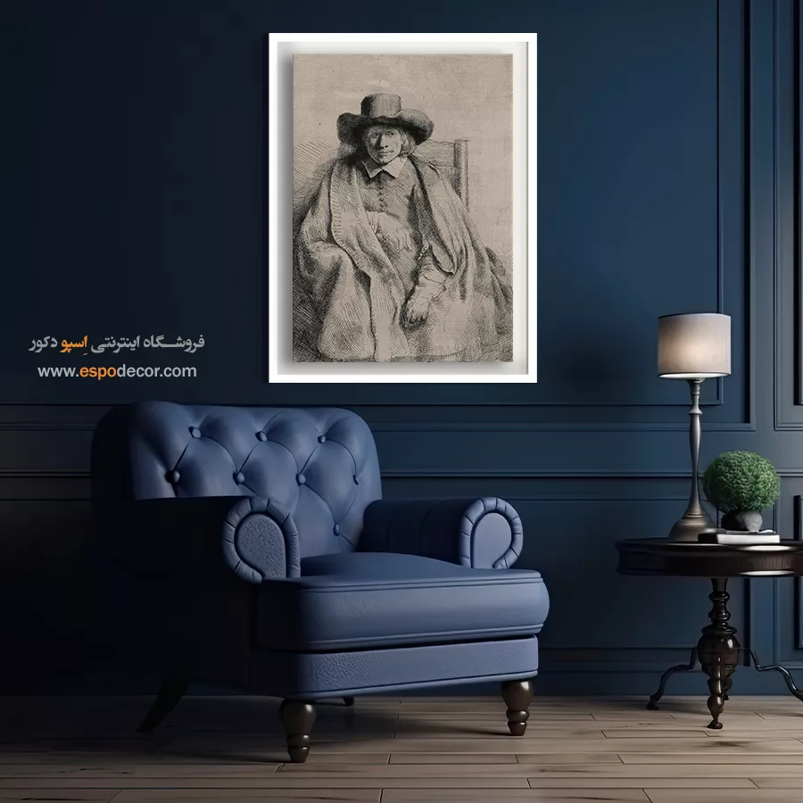 پرتره کلمنت دی یونگه، با تمرکز بر یک شخصیت حرفهای و باوقار که رامبراند با نورپردازی کلاسیک، عمق شخصیت او را برجسته میسازد. این اثر، انتخابی فاخر و متفکرانه برای دکوراسیون کلاسیک و رسمی است. (تکرار محتوا از محصول ۶۵)