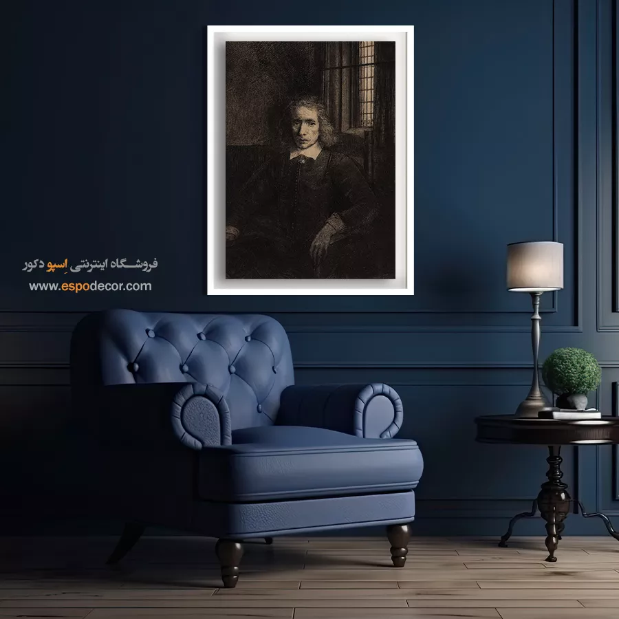 این شاهکار پرتره بر روی بوم کنواس (Canvas) با کیفیت گالری چاپ میشود. چاپ با استفاده از رنگهای با کیفیت و مقاوم، تضمین میکند که تمامی جزئیات بافت لباس و نورپردازی با وضوح بالا بازتولید شوند. این تابلو یک عنصر دکوراتیو فاخر برای دفاتر مدیریتی، اتاقهای پذیرایی کلاسیک و فضاهای رسمی است. برای تکمیل این پرتره رسمی، میتوانید آن را با قاب مدرن مشکی مات (که کنتراست نور و سایه را تقویت میکند) و یا قاب مدرن سفید (که حاشیهای تمیز و متناسب با دکوراسیون ایجاد میکند) استفاده نمایید.