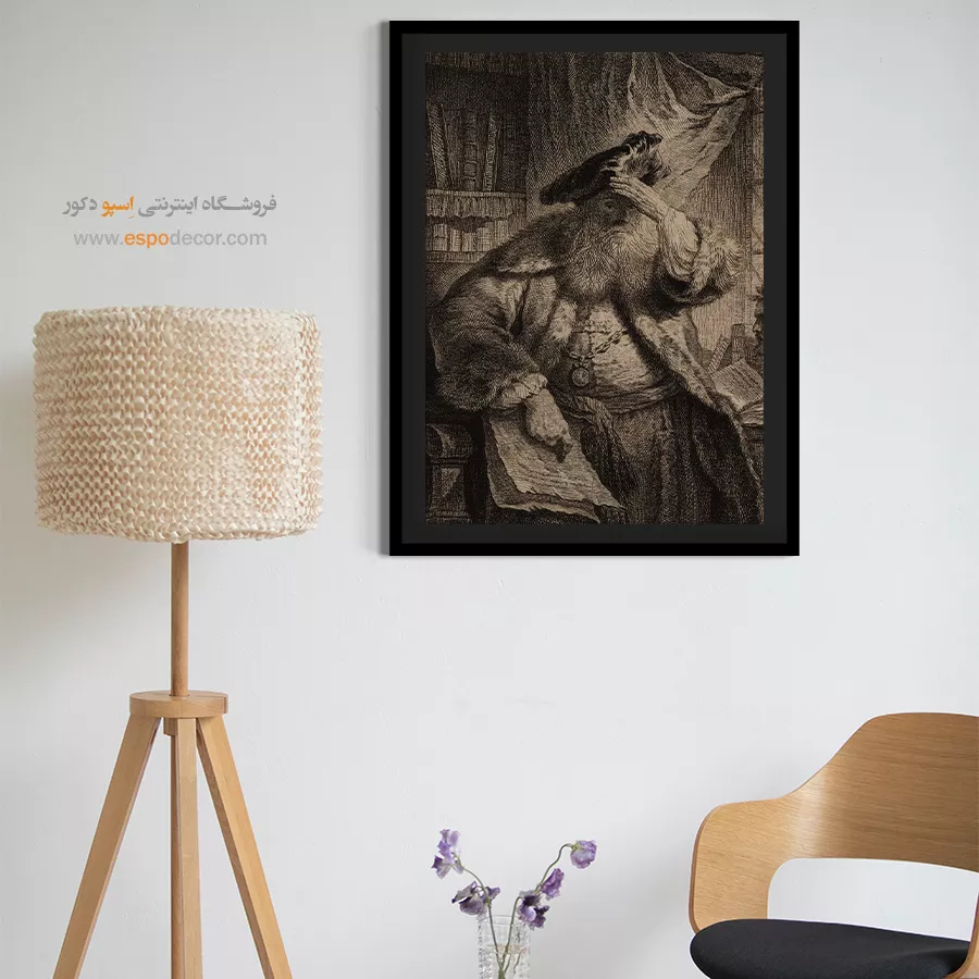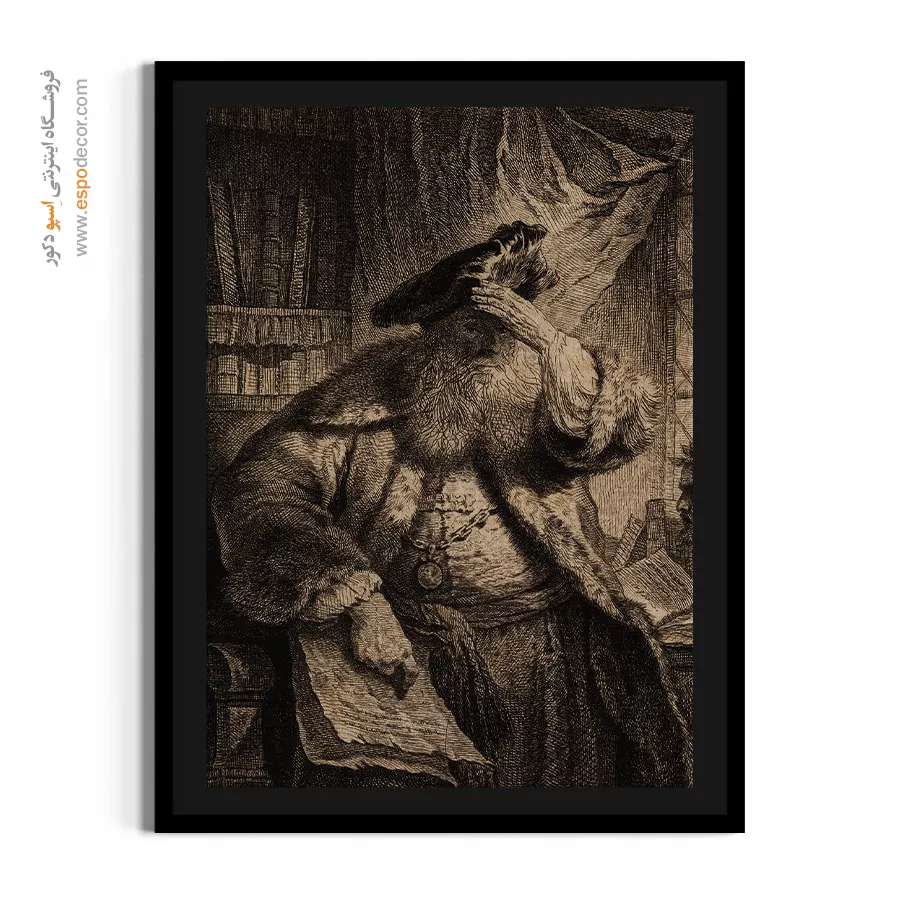 این شاهکار آکادمیک بر روی بوم کنواس (Canvas) با کیفیت گالری چاپ میشود. چاپ با استفاده از رنگهای با کیفیت و مقاوم، تضمین میکند که تمامی جزئیات سایه و نورپردازی حجمی با وضوح بالا بازتولید شوند. این تابلو یک انتخاب ایدهآل برای استودیوهای هنری، اتاقهای کار خلاقانه و فضاهای متفکرانه است. برای تکمیل این اثر، میتوانید آن را با قاب مدرن مشکی مات (برای تقویت فضای تیره و آکادمیک) و یا قاب مدرن سفید (برای ایجاد مرز روشن و مدرن) سفارش دهید.