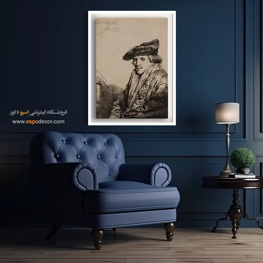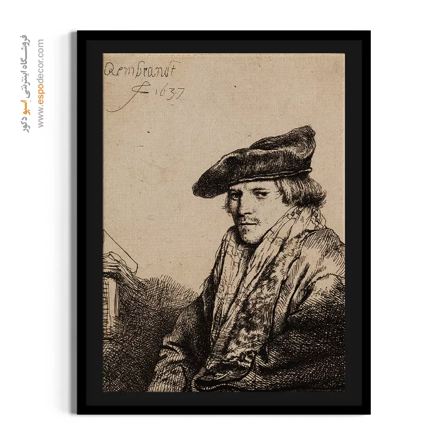 این پرتره، انرژی و وقار جوانی را در تضاد با کلاه مخملی تیره به تصویر میکشد. نورپردازی متمرکز رامبراند، بر چهره و حالتهای بااعتمادبهنفس او تأکید دارد. چاپ بوم این اثر، انتخابی شیک و جسورانه است.