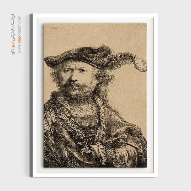 خرید تابلو سلف پرتره با کلاه رامبراند \| پرتره عمیق و متمرکز بر شخصیت