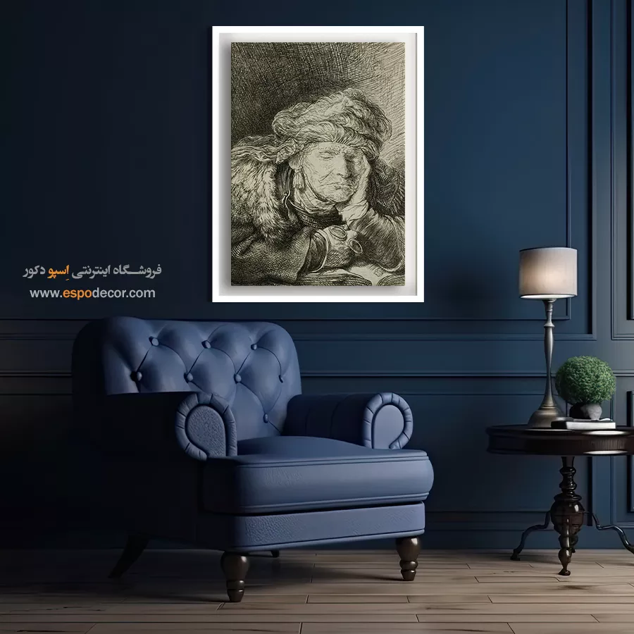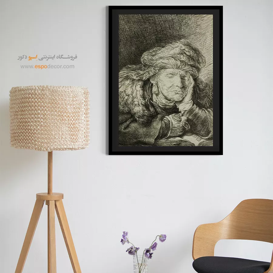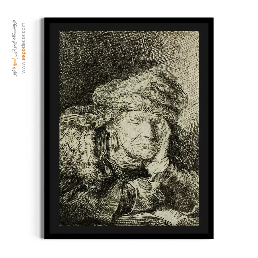 خرید تابلو نقاشی پیرزن خوابیده رامبراند \| آرامش، سادگی و مطالعه فیگور