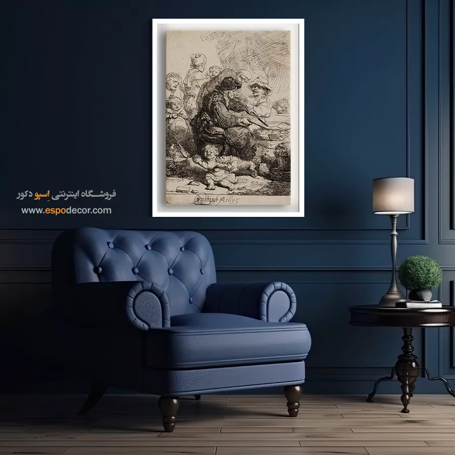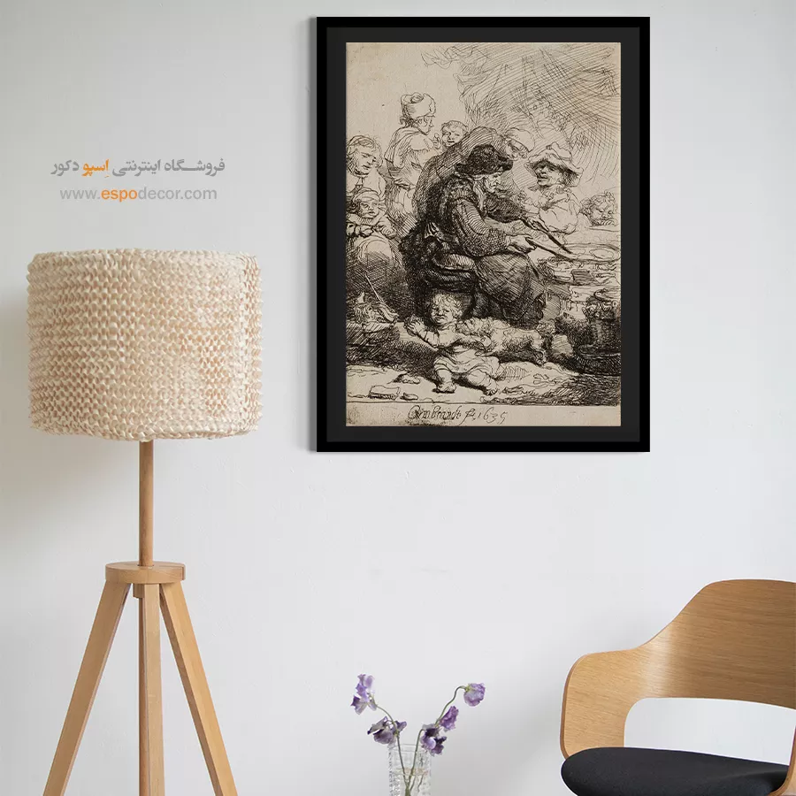 این شاهکار ژانر بر روی بوم کنواس (Canvas) با کیفیت گالری چاپ میشود. چاپ با استفاده از رنگهای با کیفیت و مقاوم، تضمین میکند که تمامی جزئیات حرکت و نورپردازی گرم با وضوح بالا بازتولید شوند. این تابلو یک انتخاب ایدهآل برای اتاقهای نشیمن، آشپزخانهها و فضاهای ناهارخوری با تم صمیمی و کلاسیک است. برای تکمیل این اثر، میتوانید آن را با قاب مدرن چوبی (برای تقویت فضای گرم و صمیمی) و یا قاب مدرن سفید (برای ایجاد مرز روشن و ساده) سفارش دهید.