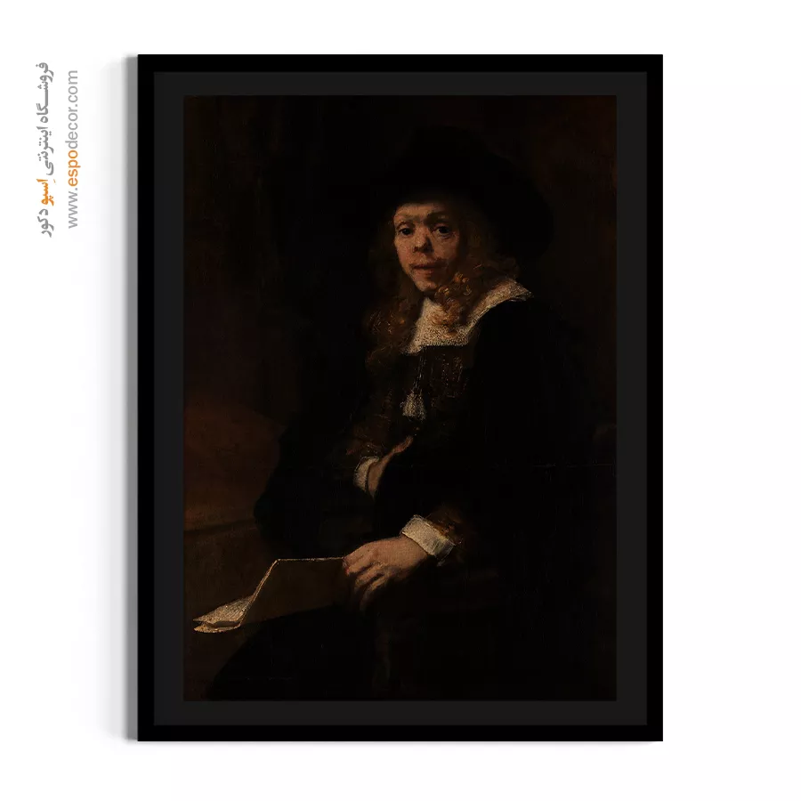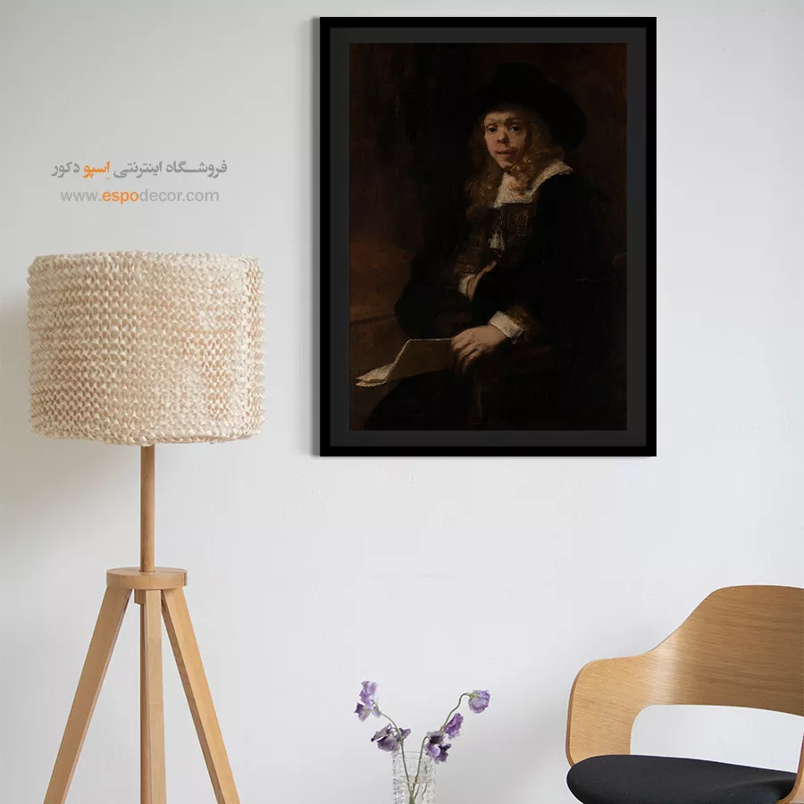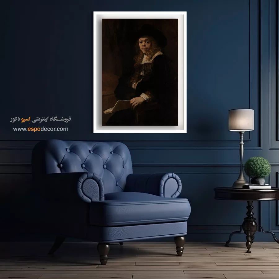 این شاهکار پرتره بر روی بوم کنواس (Canvas) با کیفیت گالری چاپ میشود. چاپ با استفاده از رنگهای با کیفیت و مقاوم، تضمین میکند که تمامی جزئیات سایه و نورپردازی، و همچنین بافت غنی ضربات قلم (Impasto) با وضوح بالا بازتولید شوند. این تابلو یک عنصر دکوراتیو باوقار برای فضاهای مطالعه، گالریهای هنری و محیطهای با تم آکادمیک است. برای تکمیل این پرتره، میتوانید آن را با قاب مدرن مشکی مات (که کنتراست را تقویت میکند) و یا قاب مدرن چوبی (برای حس اصالت و سادگی) استفاده نمایید.