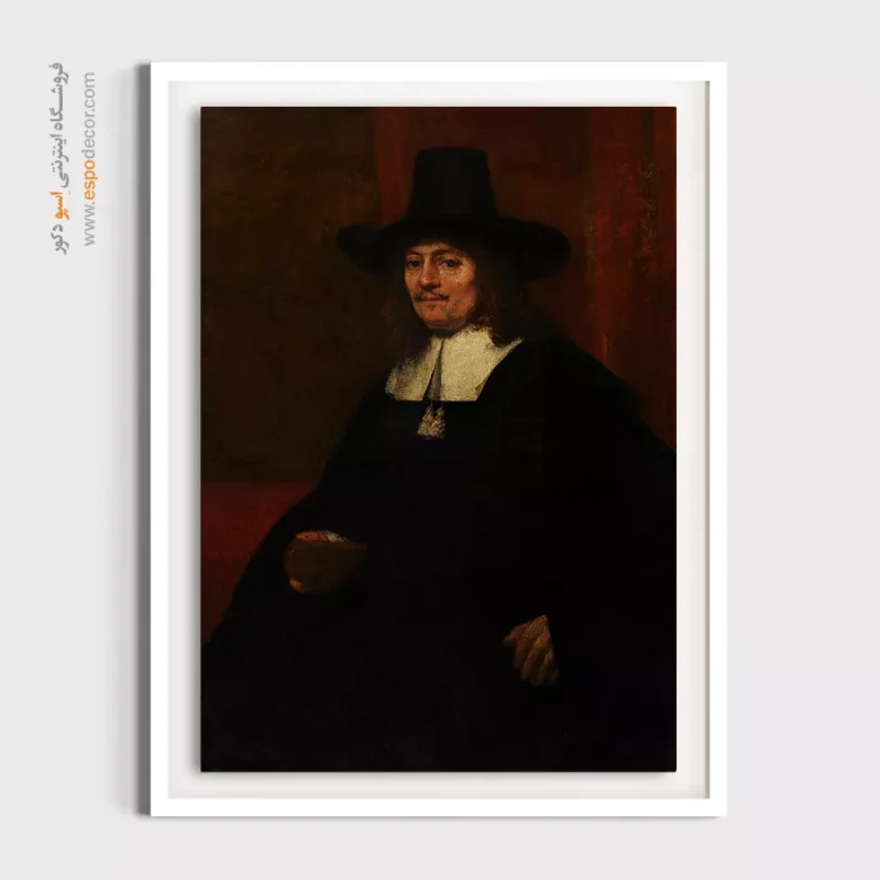 این پرتره رسمی، مردی باوقار با کلاه بلند و پهن را به تصویر میکشد که در دوره هلندی نماد ثروت و جایگاه اجتماعی بود. پالت رنگی تیره و کلاسیک، فضایی رسمی خلق کرده است. نورپردازی شدید رامبراند (کیاروسکورو)، نور را به شدت بر چهره و یقه سفید متمرکز کرده و کلاه بلند، سایهای دراماتیک بر بخش فوقانی چهره ایجاد میکند. این تابلو نمادی از **اعتبار، جدیت و قدرت فردی** است.