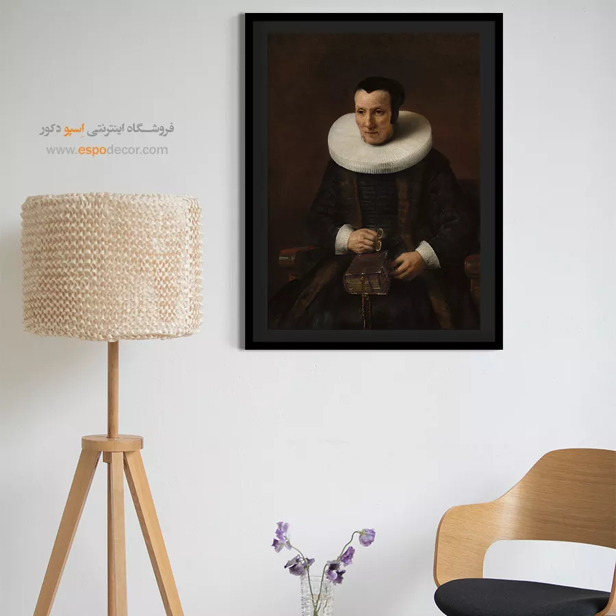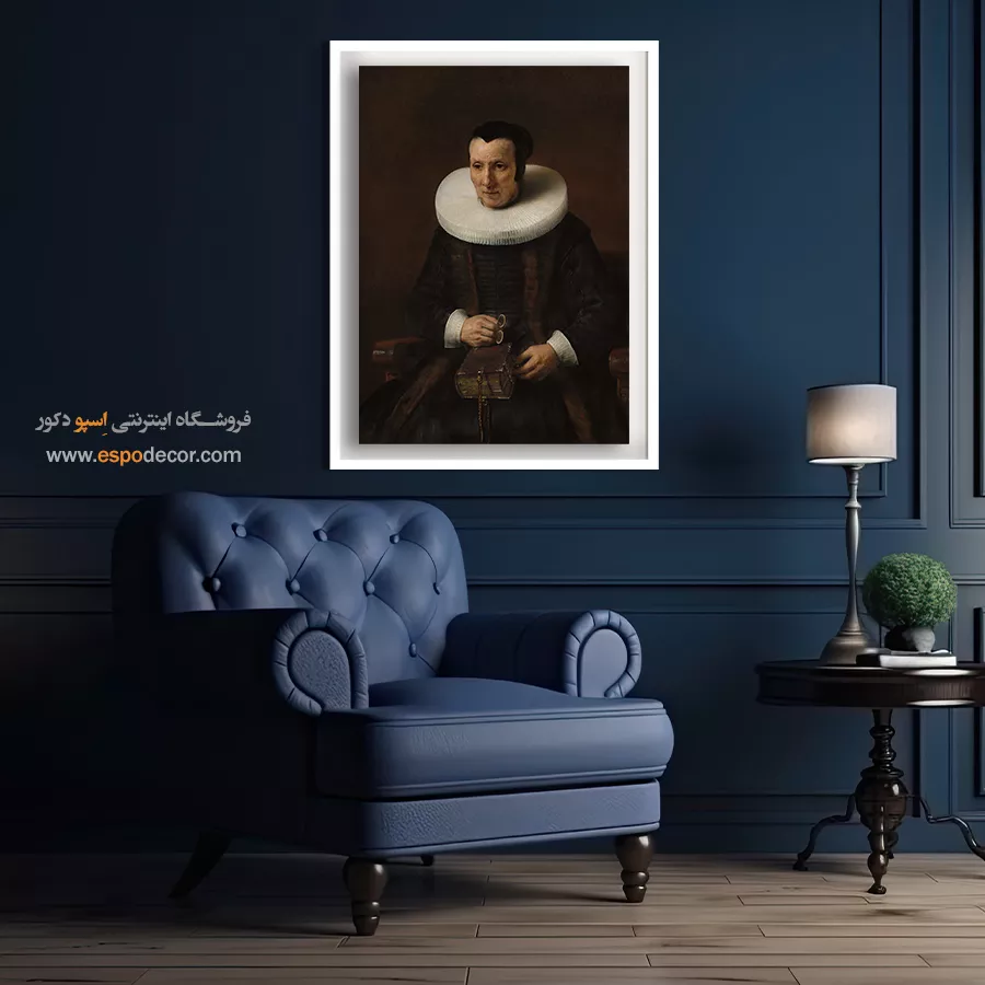 این شاهکار پرتره بر روی بوم کنواس (Canvas) با کیفیت گالری چاپ میشود. چاپ با استفاده از رنگهای با کیفیت و مقاوم، تضمین میکند که تمامی جزئیات تاریکی، کنتراست نور و چهره متفکرانه با وضوح بالا بازتولید شوند. این تابلو یک انتخاب ایدهآل برای فضاهای مطالعه، کتابخانهها و نشیمنهای کلاسیک با تم آرام است. برای تکمیل این اثر، میتوانید آن را با قاب مدرن چوبی (برای افزودن حس اصالت و گرما) و یا قاب مدرن مشکی مات (برای تقویت فضای آرام و تیره) سفارش دهید.