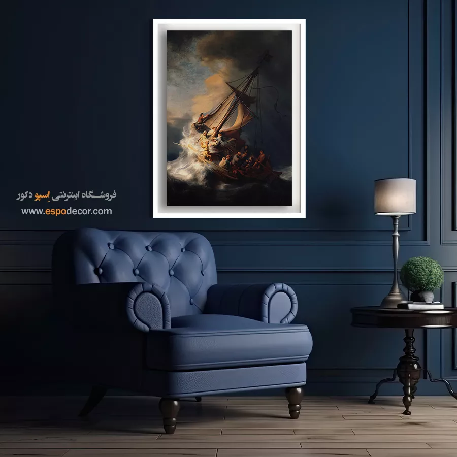 این شاهکار دراماتیک بر روی بوم کنواس (Canvas) با کیفیت گالری چاپ می‌شود. چاپ با استفاده از رنگ‌های با کیفیت و مقاوم، تضمین می‌کند که تمامی جزئیات حرکت خشن امواج، تضاد شدید نور و تاریکی و عمق احساسی صحنه به وضوح بازتولید شوند. این تابلو یک انتخاب ایده‌آل برای فضاهای پذیرایی، دفاتر مدیریتی و مجموعه‌های شخصی است. برای **خرید تابلو رامبراند** با تم اکشن و دراماتیک، این اثر بی‌نظیر است.