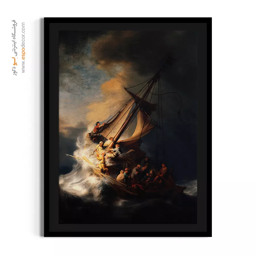 خرید تابلو نقاشی طوفان در دریای جلیل رامبراند \| شاهکار کیاروسکورو و اوج درام مذهبی