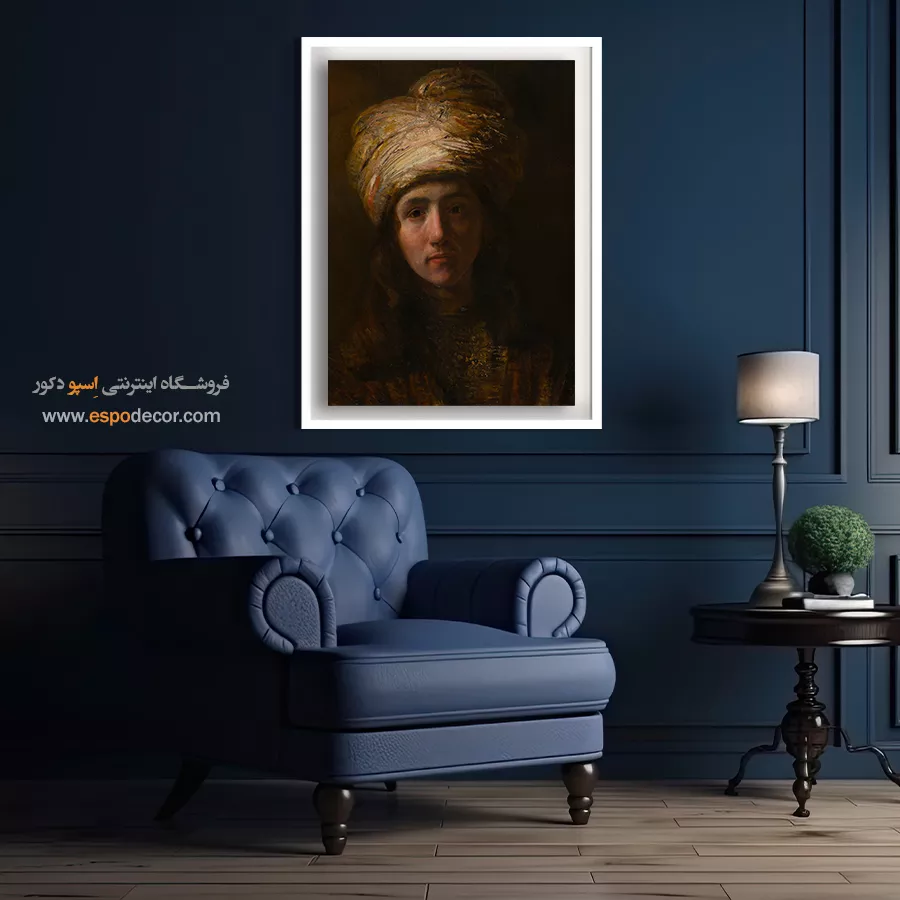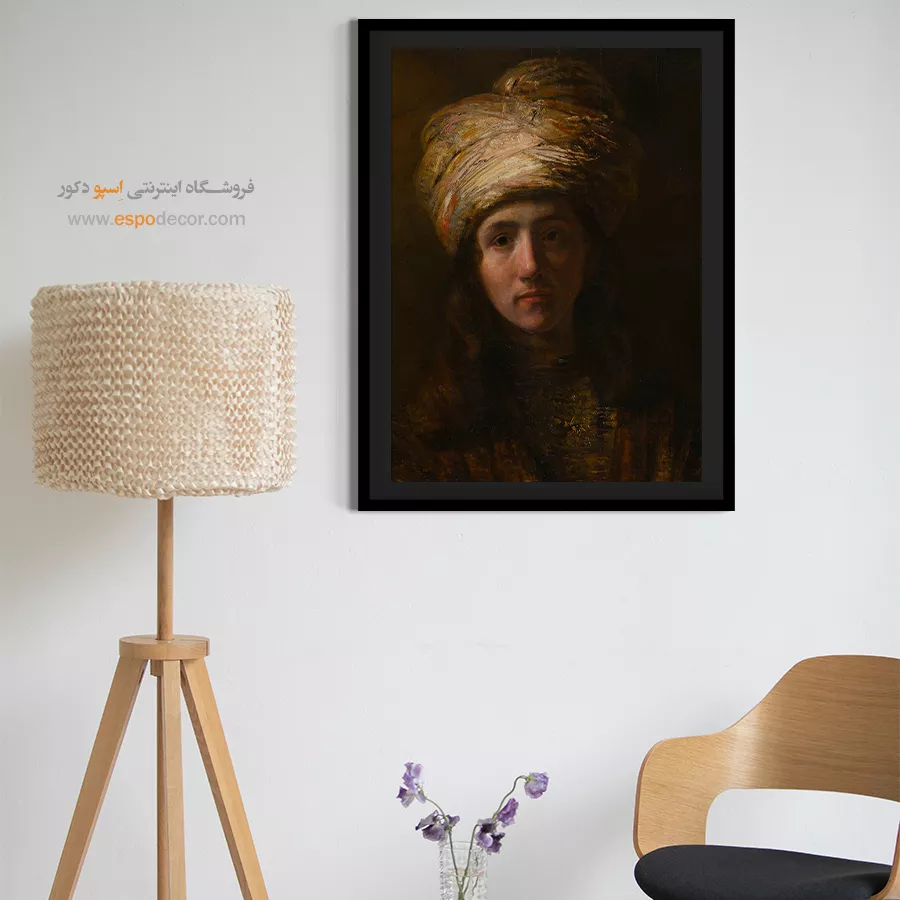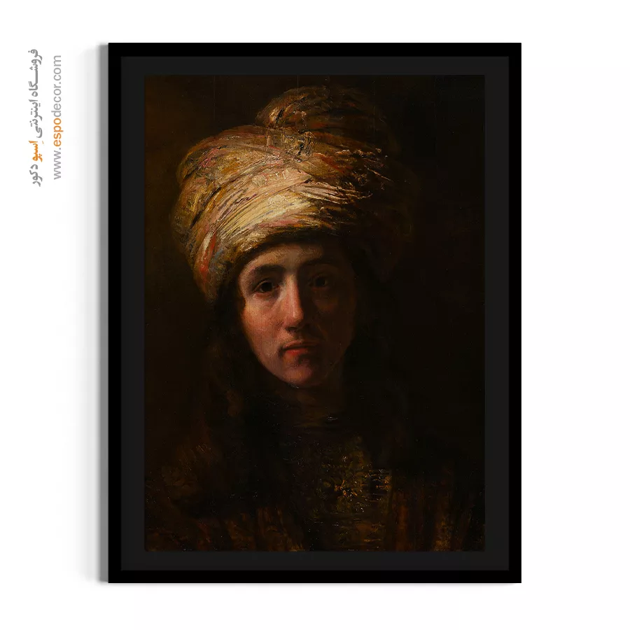 خرید تابلو نقاشی مرد جوانی با عمامه رامبراند \| ترونی شرقی و عمق روانشناختی