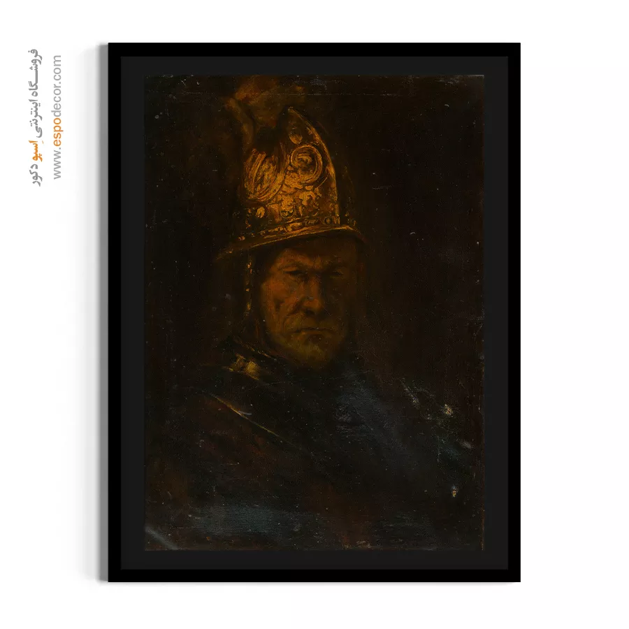 یک ترونی مشهور از یک جنگجو با کلاهخودی طلایی و درخشان. شاهکار رامبراند در نمایش بافت فلزی و قدرت بصری. از مهمترین آثار هنری رامبراند برای فروش.