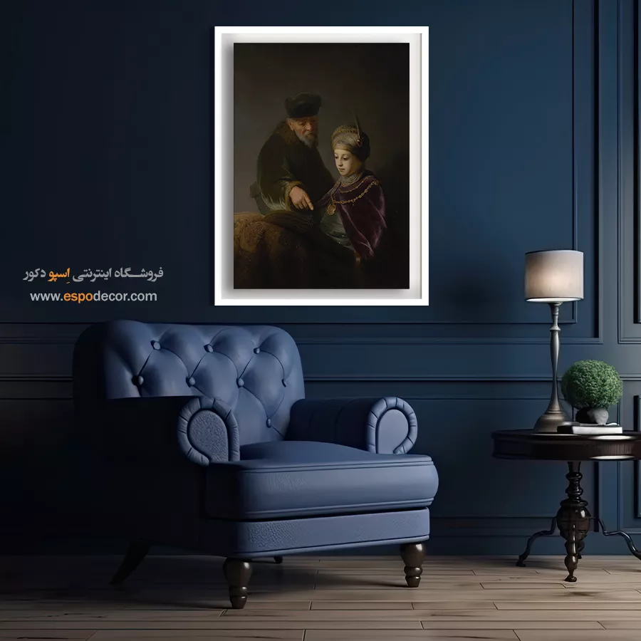 خرید تابلو نقاشی یک محقق جوان و معلم او رامبراند \| فضای آکادمیک، رابطه استاد و شاگرد