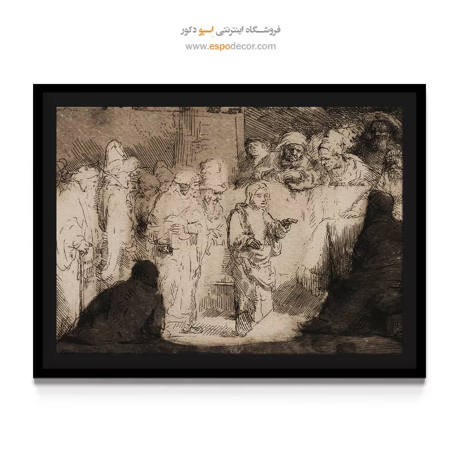 خرید تابلو نقاشی بحث مسیح با پزشکان رامبراند \| درام معبد و چهرههای متضاد