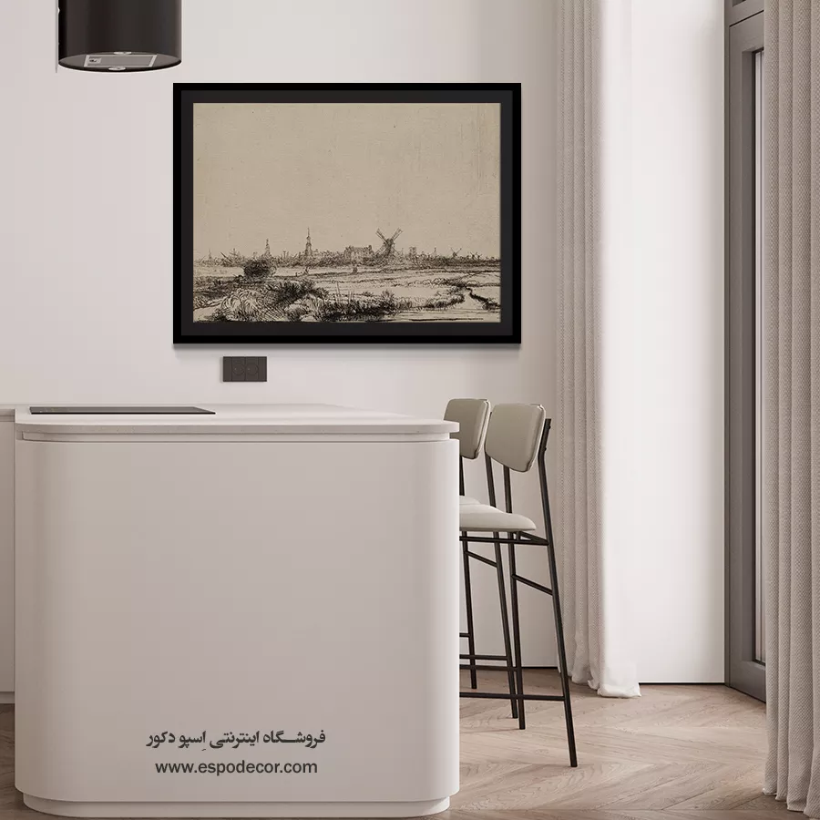 خرید حکاکی نمایی از آمستردام رامبراند \| چشم‌انداز گسترده شهری