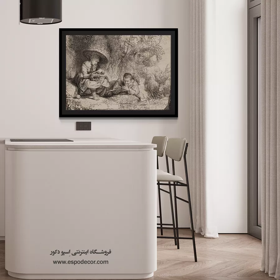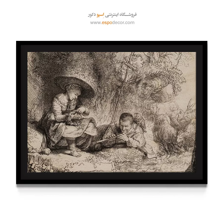 خرید حکاکی فلوت نواز رامبراند \| پرتره نوازندگی و حس موسیقی