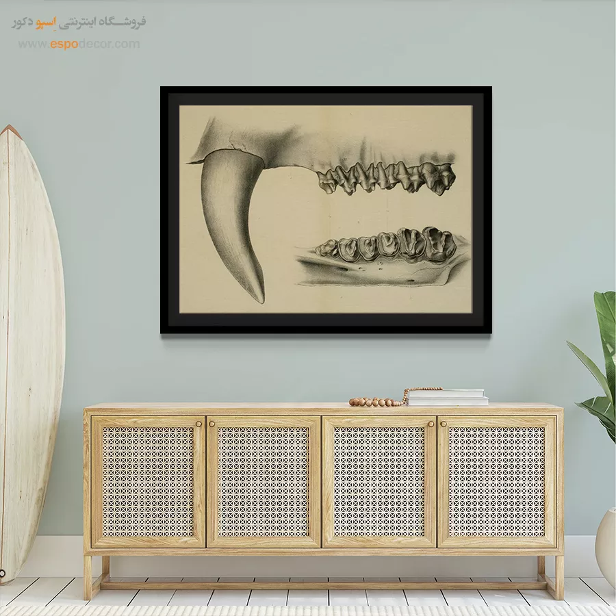 • نصب بالای مبلمان: اگر تابلوها بالای مبل یا کنسول نصب می‌شوند، لبه پایینی آن‌ها باید حدود ۱۵ تا ۳۰ سانتی‌متر بالاتر از لبه بالایی مبلمان باشد.