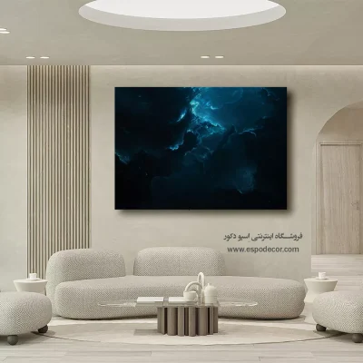 • انتخاب سایه‌های مختلف از رنگ دیوار: مانند تابلو آبی تیره روی دیوار آبی روشن، که حس آرامش و یکپارچگی در فضا ایجاد می‌کند.