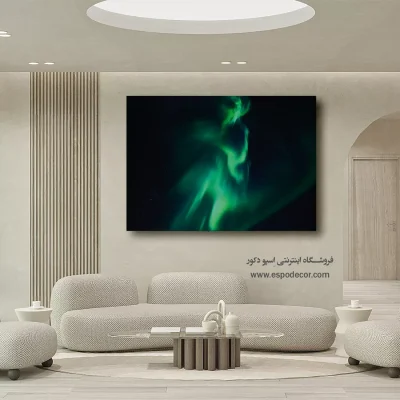 همچنین، استفاده از تابلوهای چندتکه با ابعاد کوچک تا متوسط یا یک تابلوی بزرگ با طرح عمودی (برای بلندتر نشان دادن سقف)، می‌تواند نقطه کانونی جذابی ایجاد کرده و کمبود نور را جبران نماید.