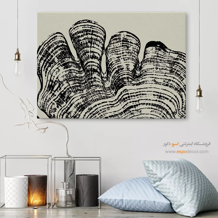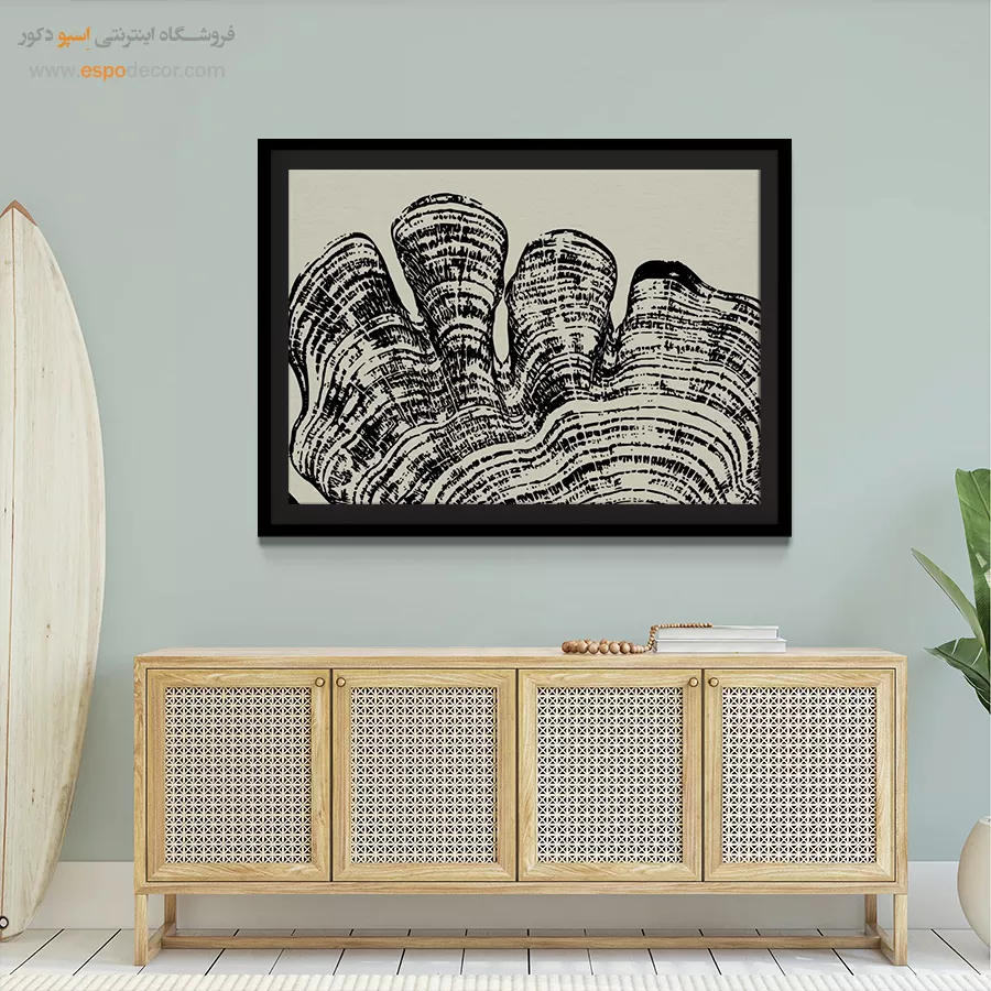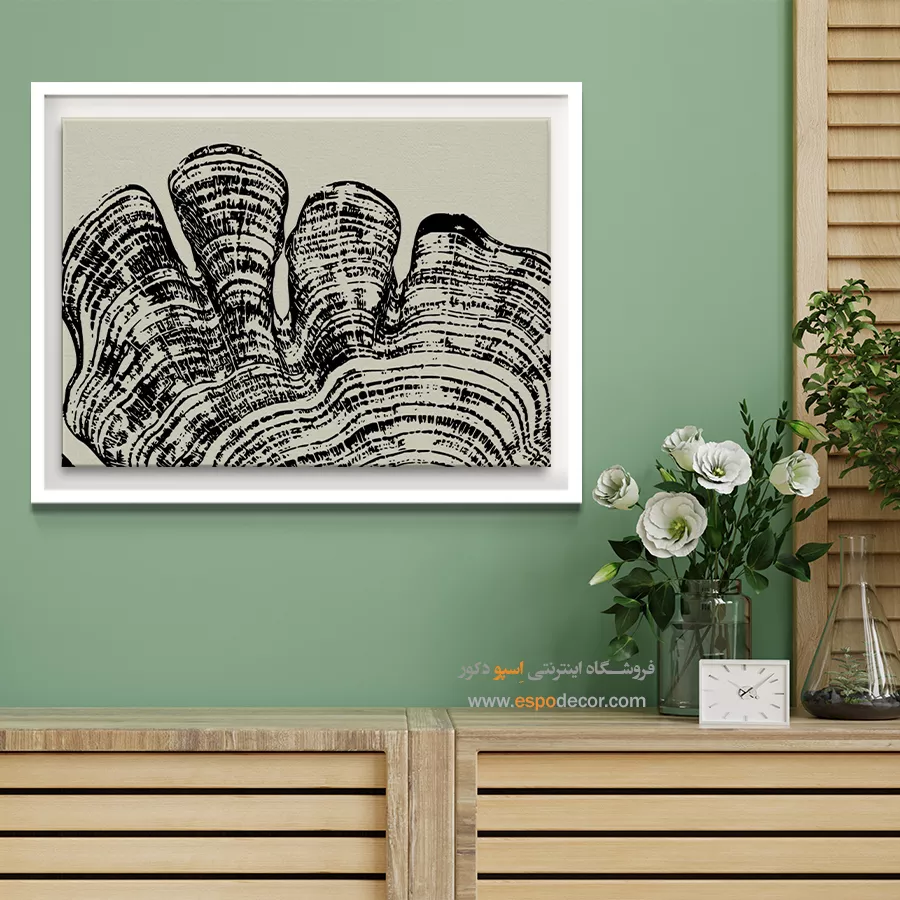 • ادامه طرح اصلی تا کناره‌های بوم: ما در اسپو دکور از این روش استفاده می‌کنیم تا تابلو حالت منسجم و یکپارچه داشته باشد و از نمای کناری نیز جذاب دیده شود.