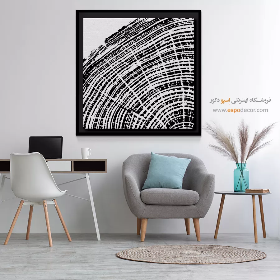 سبک مینیمال: تمرکز بر سادگی است. تابلوهای مینیمال آرت با خطوط ساده، اشکال هندسی و پالت رنگی خنثی (مانند سیاه، سفید، خاکستری یا بژ) ایده‌آل هستند. این تابلوها اغلب بدون قاب یا با کلاف ساده نصب می‌شوند تا تأکید بر مفهوم و فضای خالی باشد.