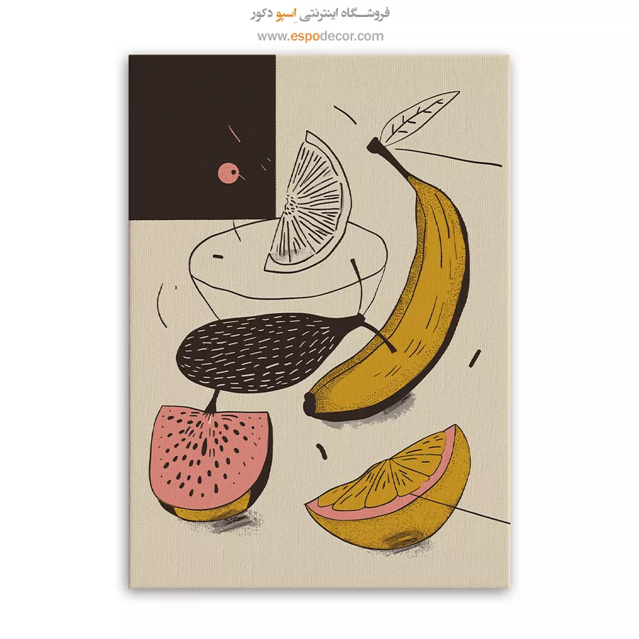 • ادامه طرح اصلی تا کناره‌های بوم: ما در اسپو دکور از این روش استفاده می‌کنیم تا تابلو حالت منسجم و یکپارچه داشته باشد و از نمای کناری نیز جذاب دیده شود.