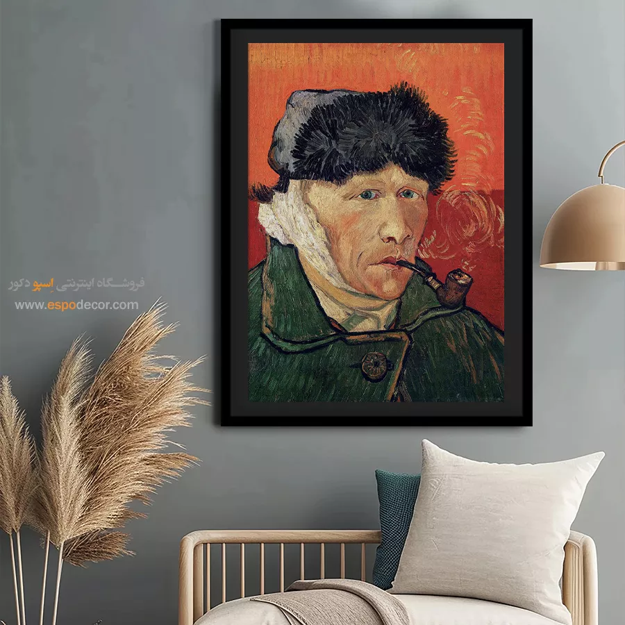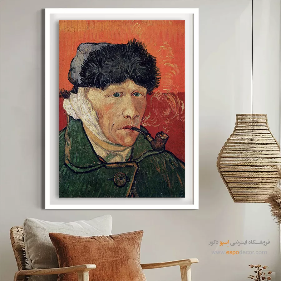 سلف پرتره با پیپ و گوش بانداژ شده – تابلو نقاشی های ون گوگ