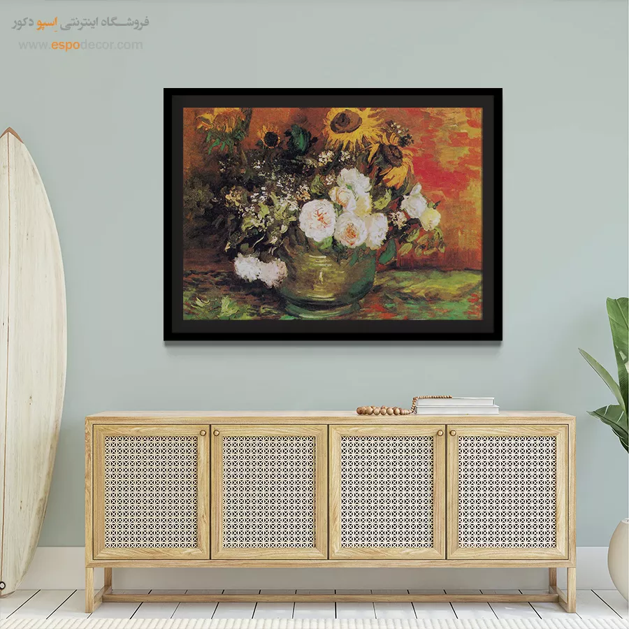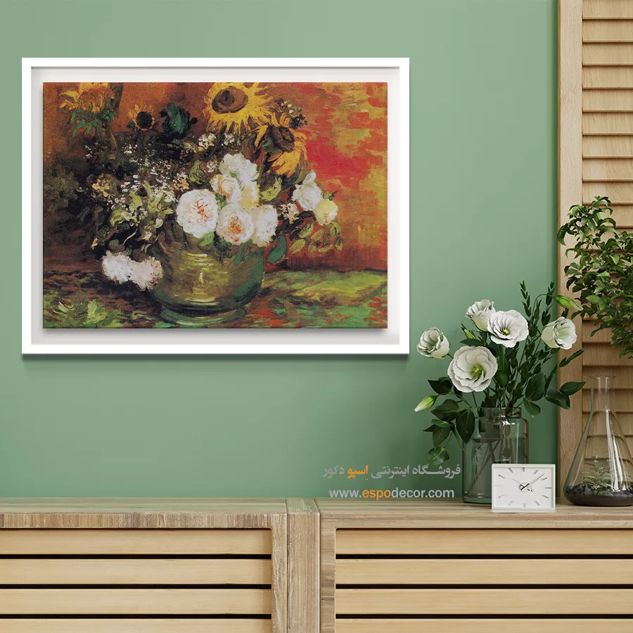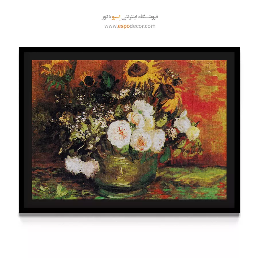 کاسه با گل رز آفتابگردان – تابلو نقاشی های ون گوگ