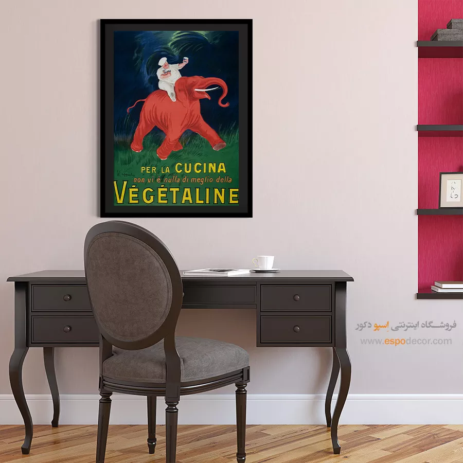 معمولاً شامل یک چاپ (روی کاغذ یا مقوا) است که داخل یک قاب چوبی، فلزی یا PVC قرار گرفته و برای محافظت از تصویر، با شیشه یا پلکسی پوشانده میشود، که این شیشه و قاب وزن و جلوهی رسمیتری به آن میبخشد.