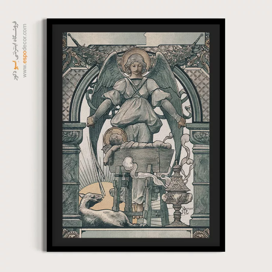معمولاً شامل یک چاپ (روی کاغذ یا مقوا) است که داخل یک قاب چوبی، فلزی یا PVC قرار گرفته و برای محافظت از تصویر، با شیشه یا پلکسی پوشانده میشود، که این شیشه و قاب وزن و جلوهی رسمیتری به آن میبخشد.