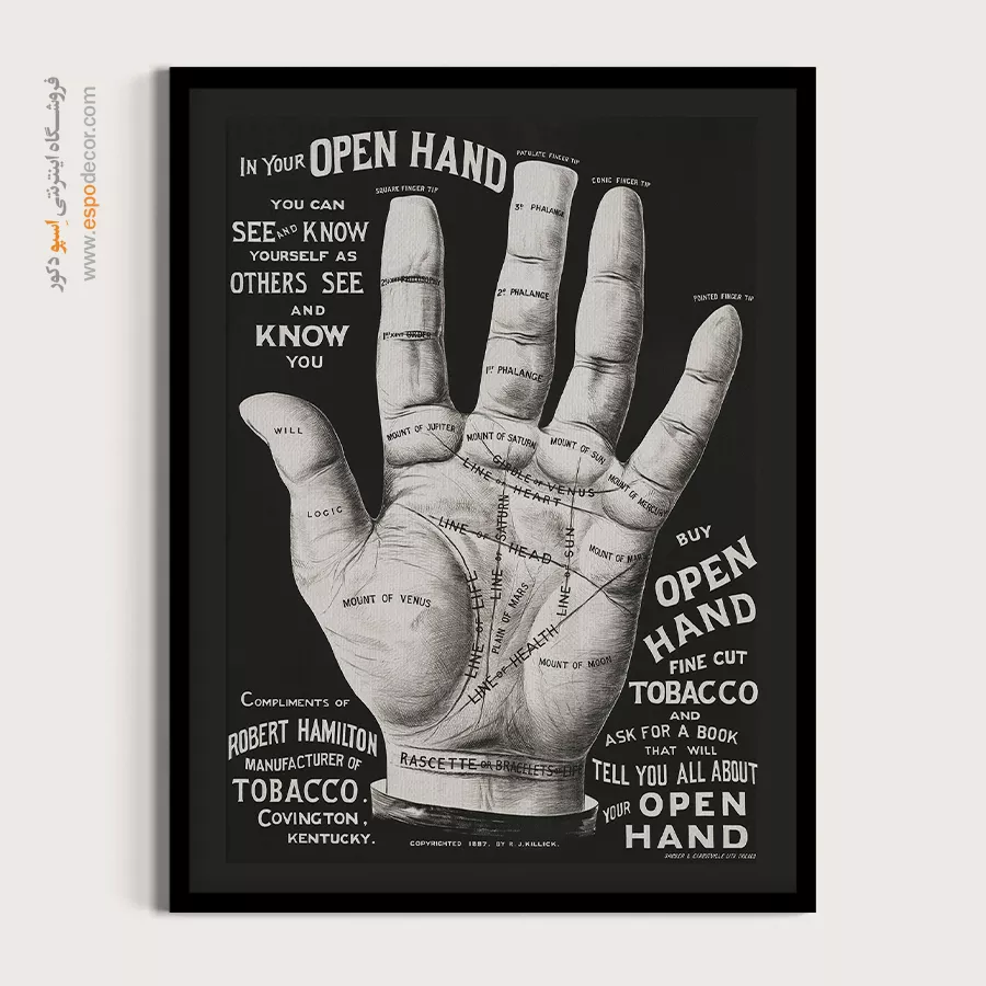 معمولاً شامل یک چاپ (روی کاغذ یا مقوا) است که داخل یک قاب چوبی، فلزی یا PVC قرار گرفته و برای محافظت از تصویر، با شیشه یا پلکسی پوشانده میشود، که این شیشه و قاب وزن و جلوهی رسمیتری به آن میبخشد.