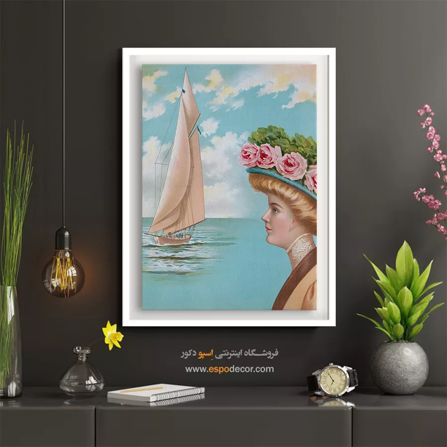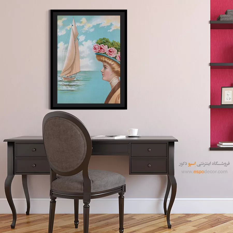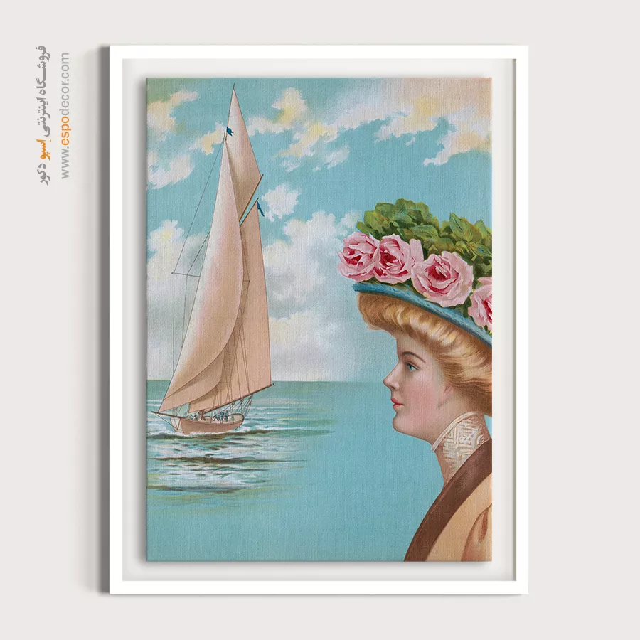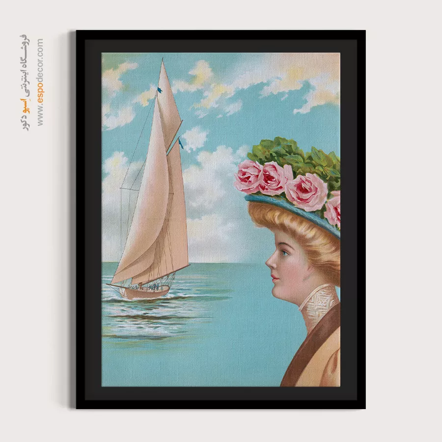 زن زیبا در ساحل – تابلو پوستر وینتیج