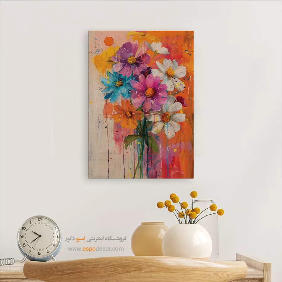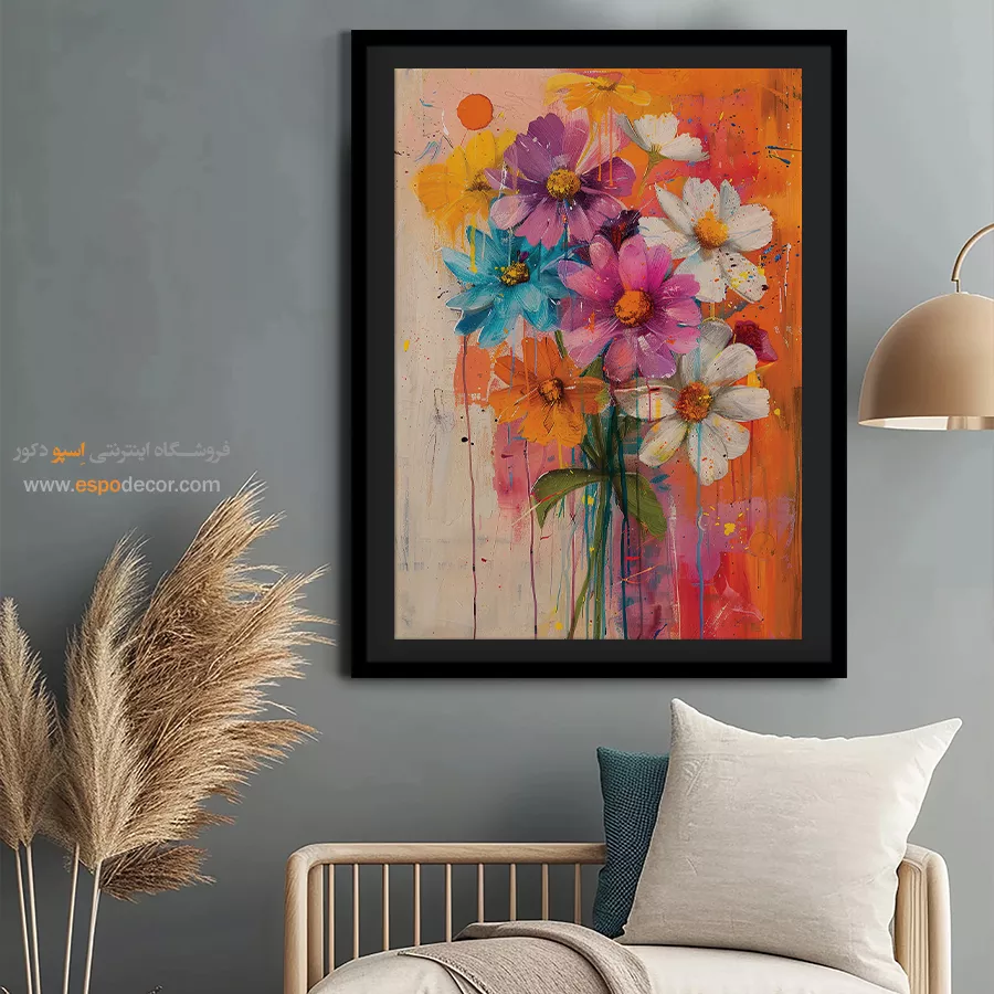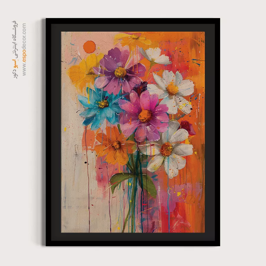 • ادامه طرح اصلی تا کناره‌های بوم: ما در اسپو دکور از این روش استفاده می‌کنیم تا تابلو حالت منسجم و یکپارچه داشته باشد و از نمای کناری نیز جذاب دیده شود.