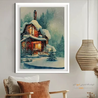 همچنین، استفاده از تابلوهای چندتکه با ابعاد کوچک تا متوسط یا یک تابلوی بزرگ با طرح عمودی (برای بلندتر نشان دادن سقف)، می‌تواند نقطه کانونی جذابی ایجاد کرده و کمبود نور را جبران نماید.