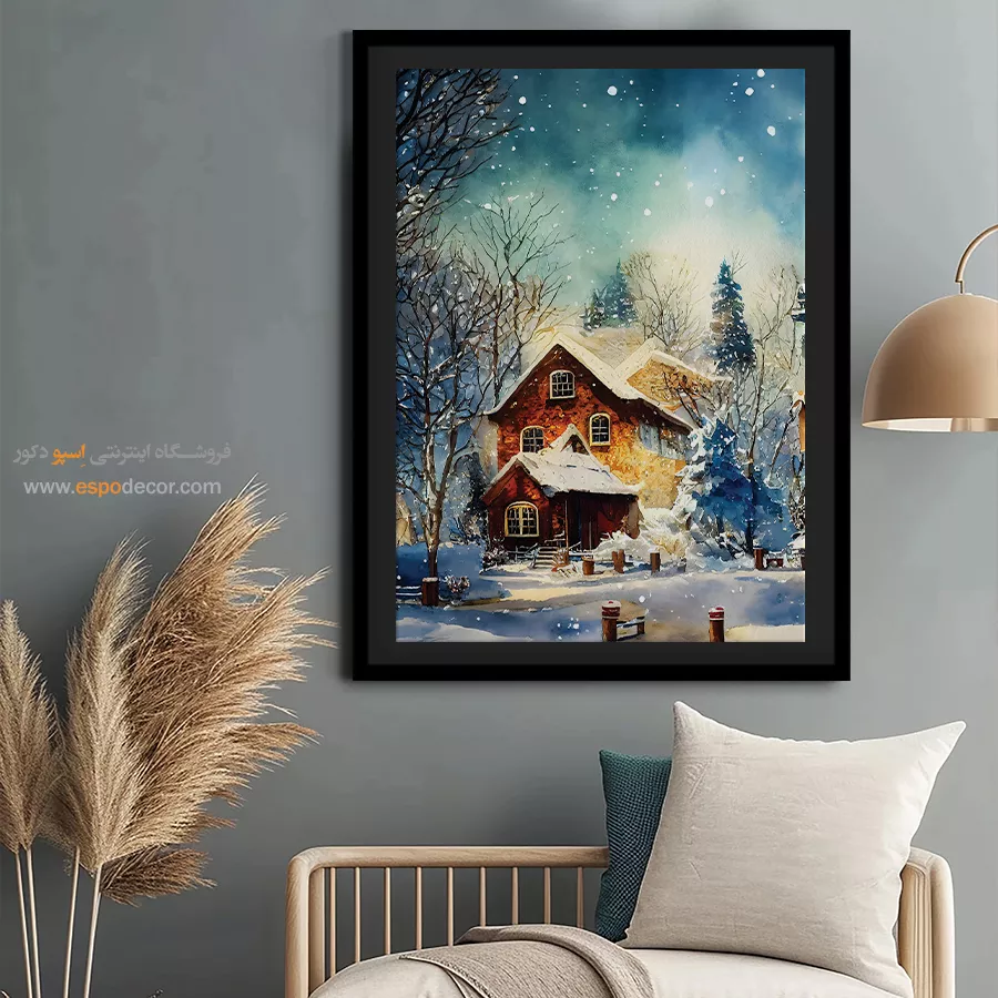 همچنین، استفاده از تابلوهای چندتکه با ابعاد کوچک تا متوسط یا یک تابلوی بزرگ با طرح عمودی (برای بلندتر نشان دادن سقف)، می‌تواند نقطه کانونی جذابی ایجاد کرده و کمبود نور را جبران نماید.