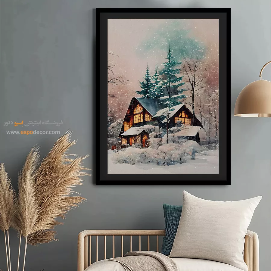 همچنین، استفاده از تابلوهای چندتکه با ابعاد کوچک تا متوسط یا یک تابلوی بزرگ با طرح عمودی (برای بلندتر نشان دادن سقف)، می‌تواند نقطه کانونی جذابی ایجاد کرده و کمبود نور را جبران نماید.