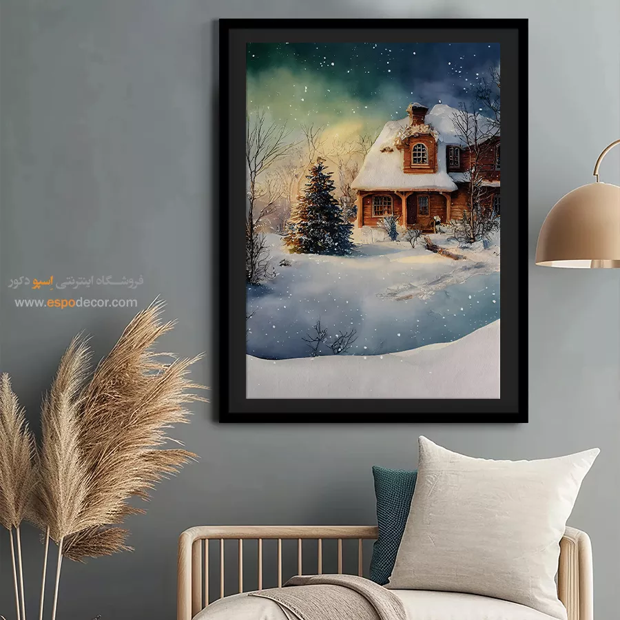 همچنین، استفاده از تابلوهای چندتکه با ابعاد کوچک تا متوسط یا یک تابلوی بزرگ با طرح عمودی (برای بلندتر نشان دادن سقف)، می‌تواند نقطه کانونی جذابی ایجاد کرده و کمبود نور را جبران نماید.