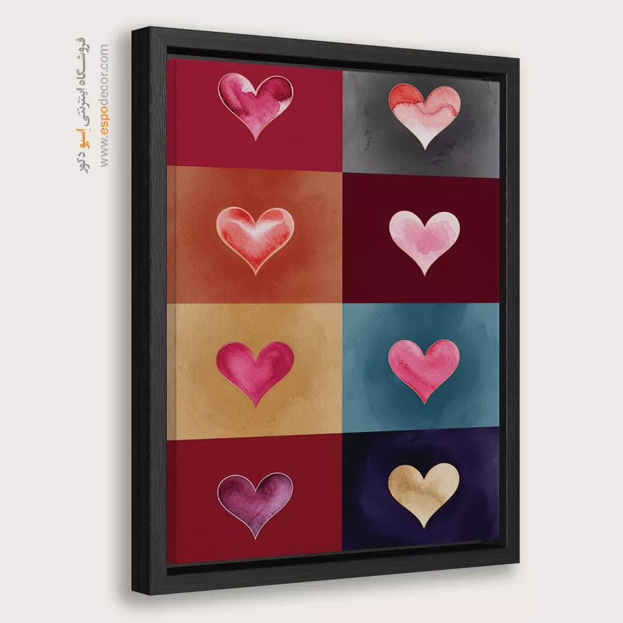 • ادامه طرح اصلی تا کناره‌های بوم: ما در اسپو دکور از این روش استفاده می‌کنیم تا تابلو حالت منسجم و یکپارچه داشته باشد و از نمای کناری نیز جذاب دیده شود.