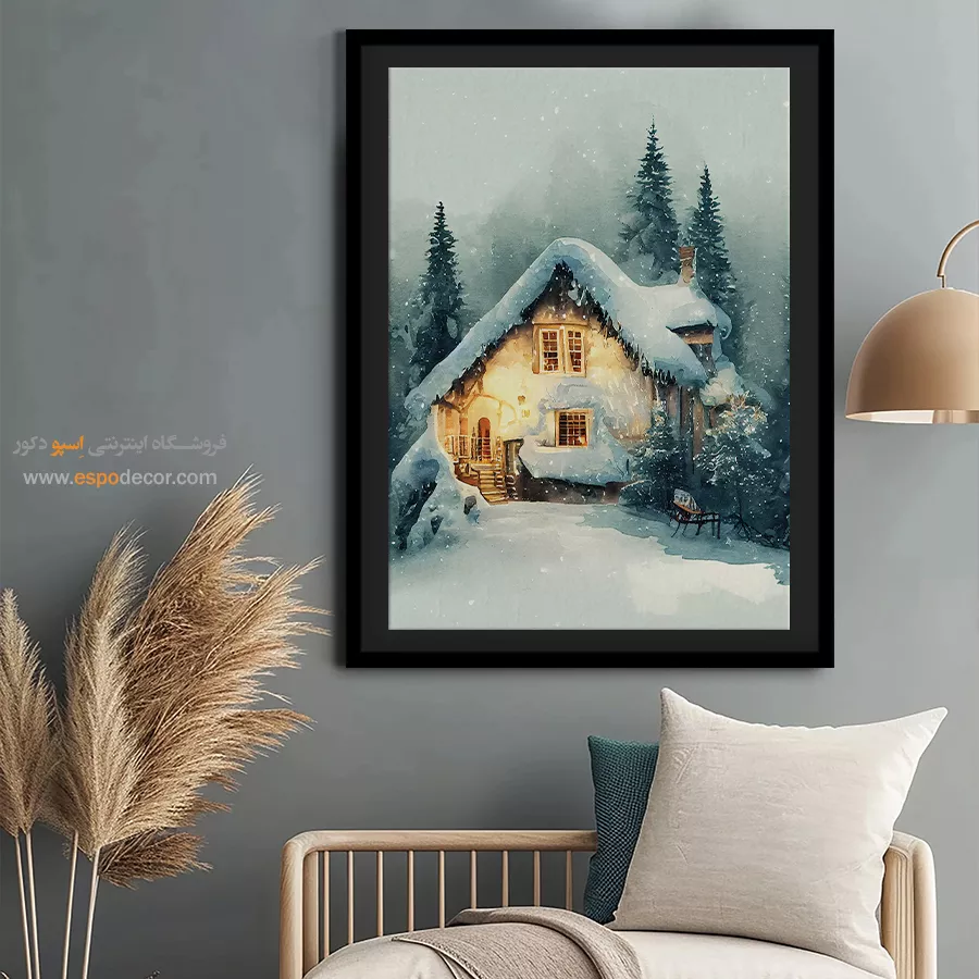 همچنین، استفاده از تابلوهای چندتکه با ابعاد کوچک تا متوسط یا یک تابلوی بزرگ با طرح عمودی (برای بلندتر نشان دادن سقف)، می‌تواند نقطه کانونی جذابی ایجاد کرده و کمبود نور را جبران نماید.