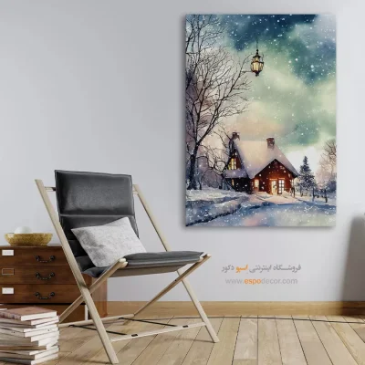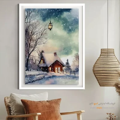 همچنین، استفاده از تابلوهای چندتکه با ابعاد کوچک تا متوسط یا یک تابلوی بزرگ با طرح عمودی (برای بلندتر نشان دادن سقف)، می‌تواند نقطه کانونی جذابی ایجاد کرده و کمبود نور را جبران نماید.