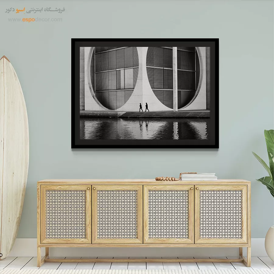 سبک مینیمال: تمرکز بر سادگی است. تابلوهای مینیمال آرت با خطوط ساده، اشکال هندسی و پالت رنگی خنثی (مانند سیاه، سفید، خاکستری یا بژ) ایده‌آل هستند. این تابلوها اغلب بدون قاب یا با کلاف ساده نصب می‌شوند تا تأکید بر مفهوم و فضای خالی باشد.