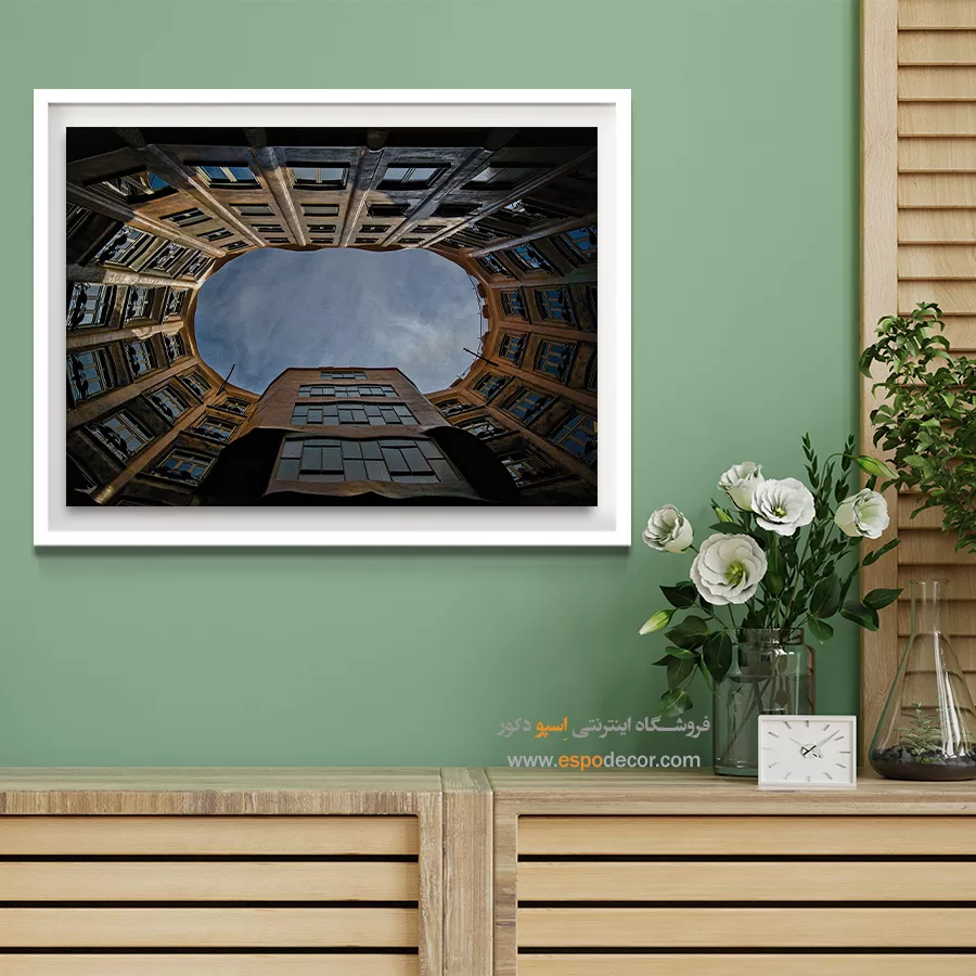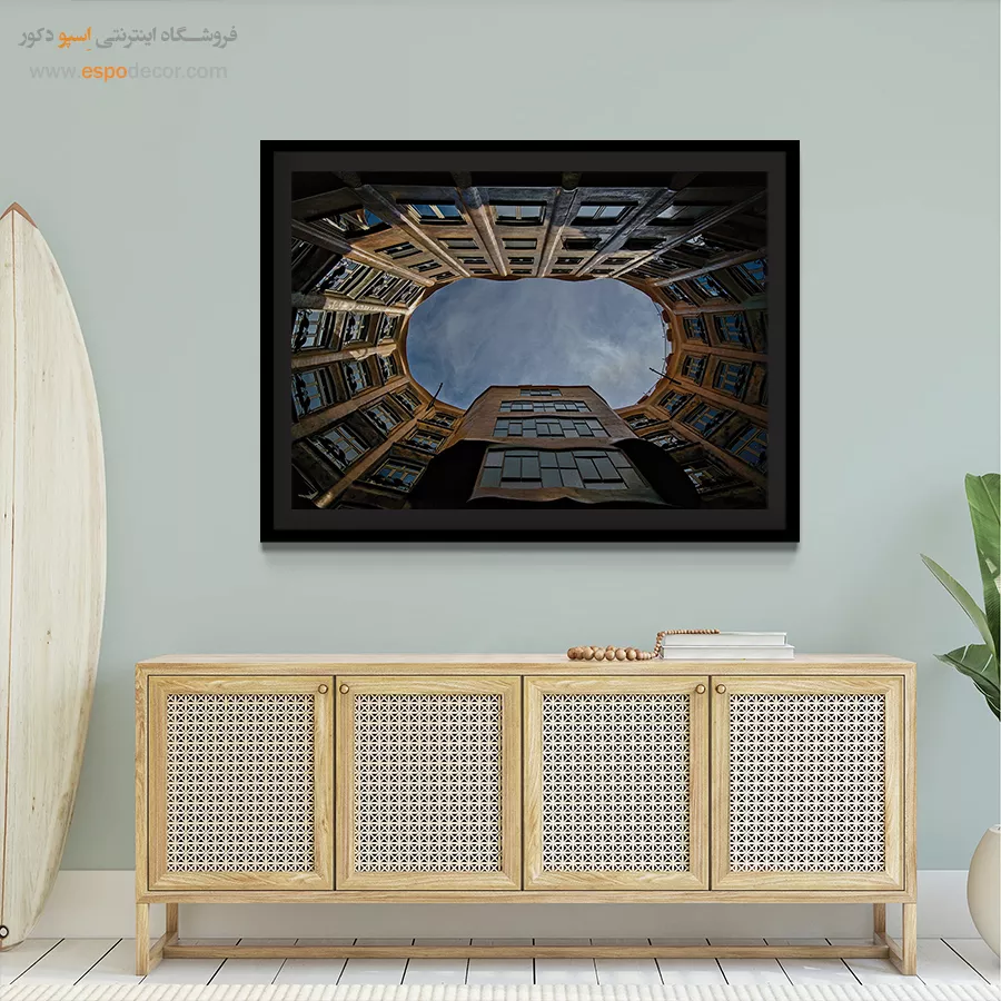 - ادامه طرح اصلی تا کنارههای بوم: ما در اسپو دکور از این روش استفاده میکنیم تا تابلو حالت منسجم و یکپارچه داشته باشد و از نمای کناری نیز جذاب دیده شود.