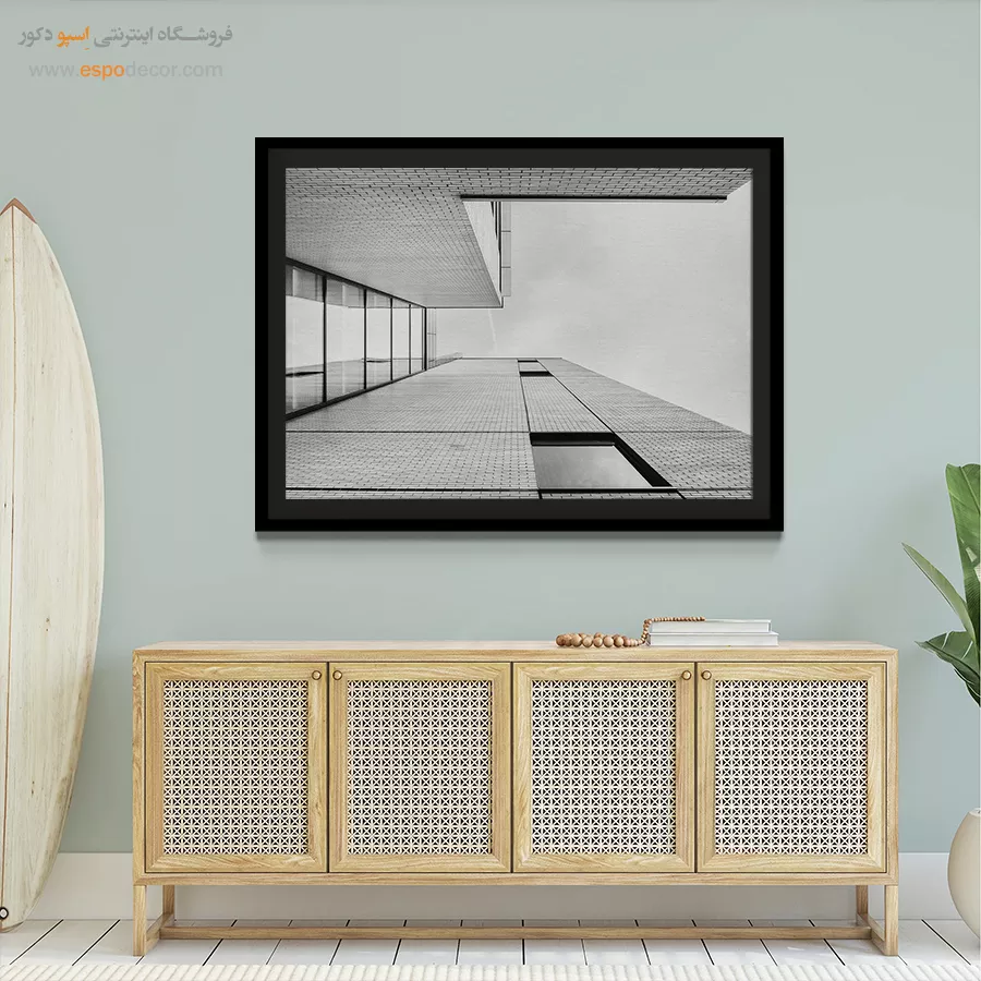 سبک مینیمال: تمرکز بر سادگی است. تابلوهای مینیمال آرت با خطوط ساده، اشکال هندسی و پالت رنگی خنثی (مانند سیاه، سفید، خاکستری یا بژ) ایده‌آل هستند. این تابلوها اغلب بدون قاب یا با کلاف ساده نصب می‌شوند تا تأکید بر مفهوم و فضای خالی باشد.