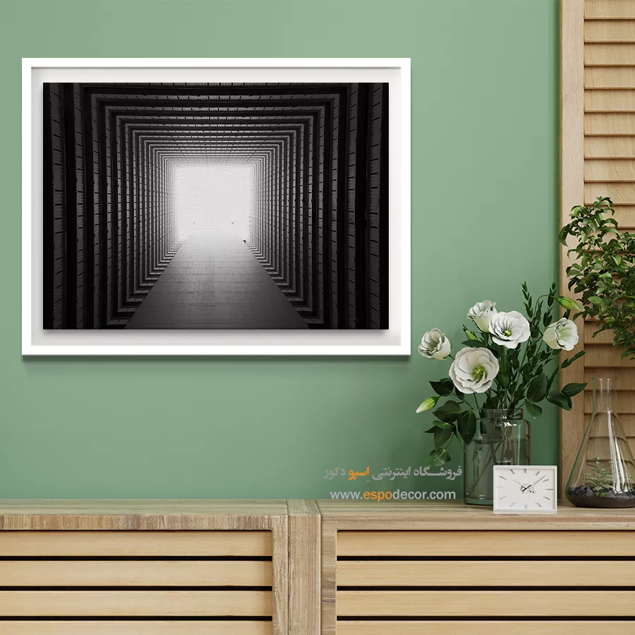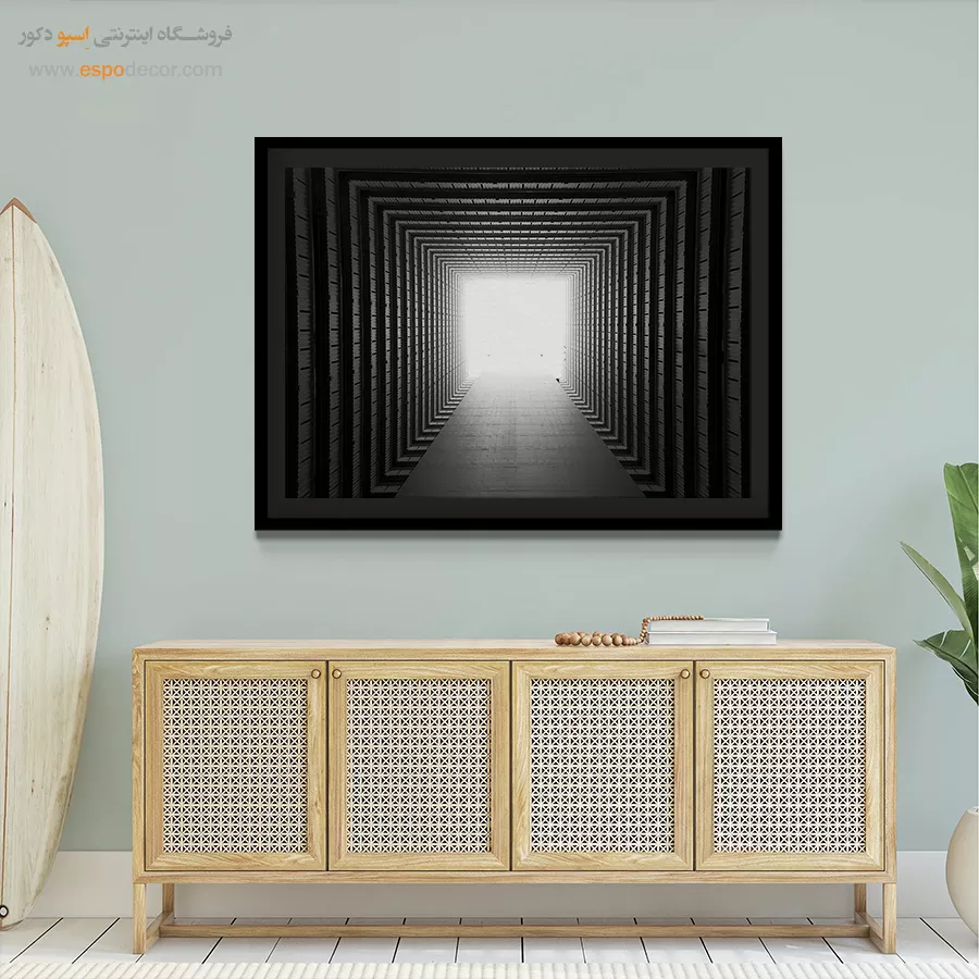 - ادامه طرح اصلی تا کنارههای بوم: ما در اسپو دکور از این روش استفاده میکنیم تا تابلو حالت منسجم و یکپارچه داشته باشد و از نمای کناری نیز جذاب دیده شود.